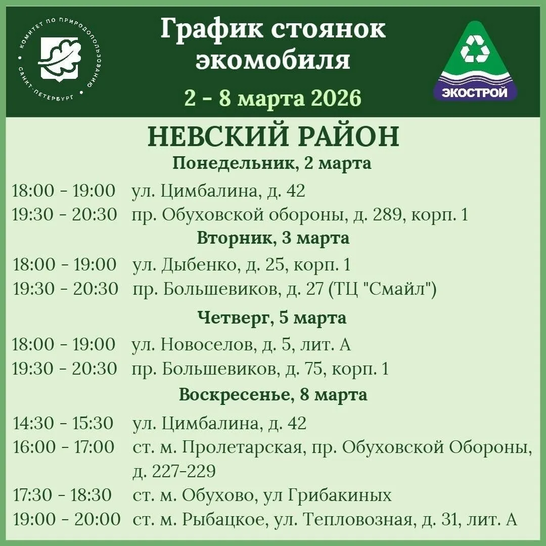 Расписание работы экомобиля в Невском районе