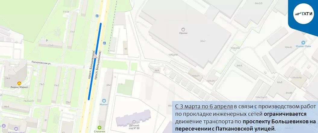 На проспекте Большевиков ограничат движение с 3 марта по 6 апреля из-за прокладки сетей 🚧