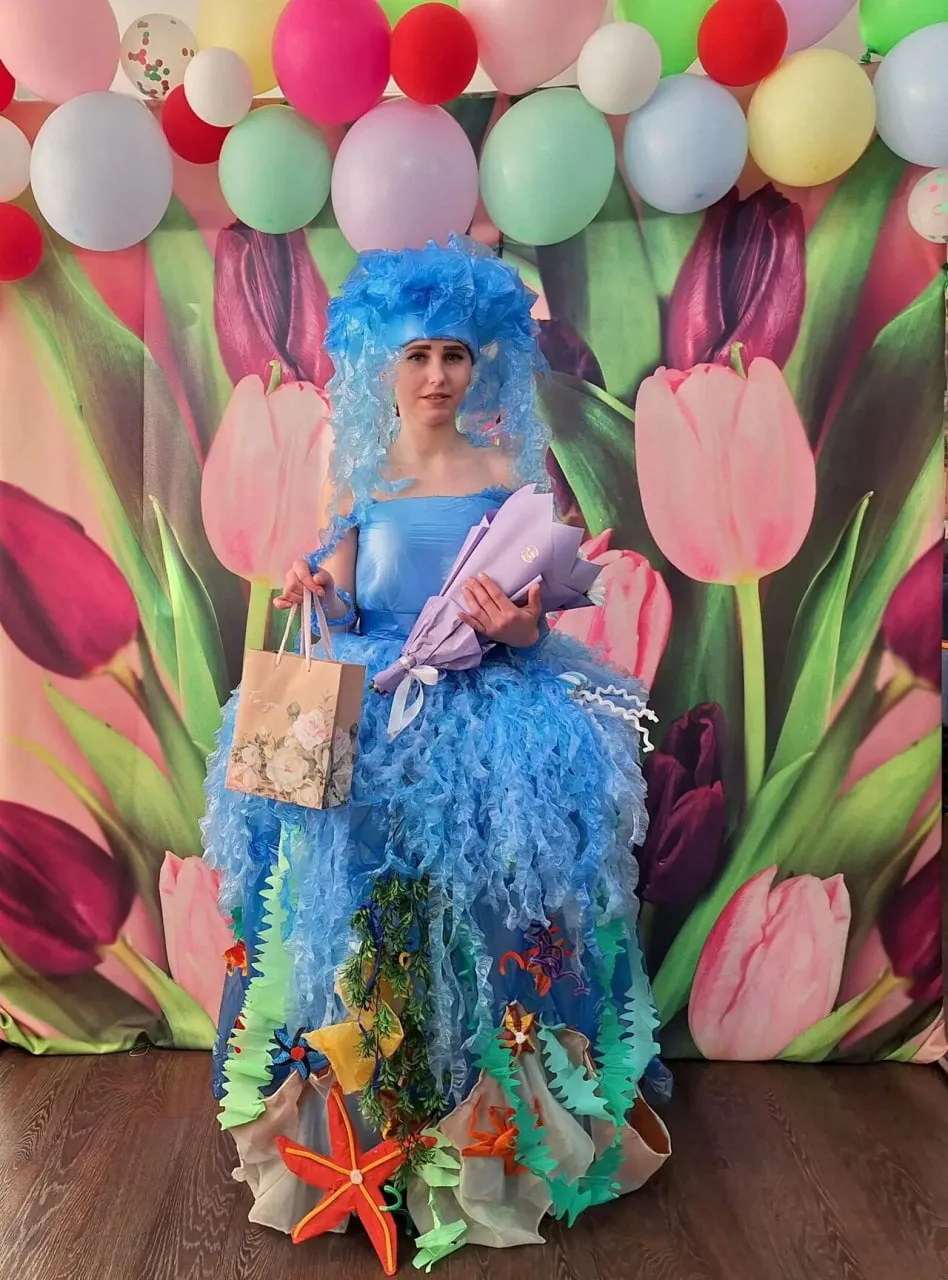 – Я всегда что-то делала своими руками: вырезала, собирала, придумывала, превращая обычные вещи в нечто необычное, волшебное. При создании этого платья захотелось изобразить целый мир в одном костюме, и так родилась задумка сделать наряд, в котором будут сразу три стихии: небо, земля и море, – рассказывает участница.