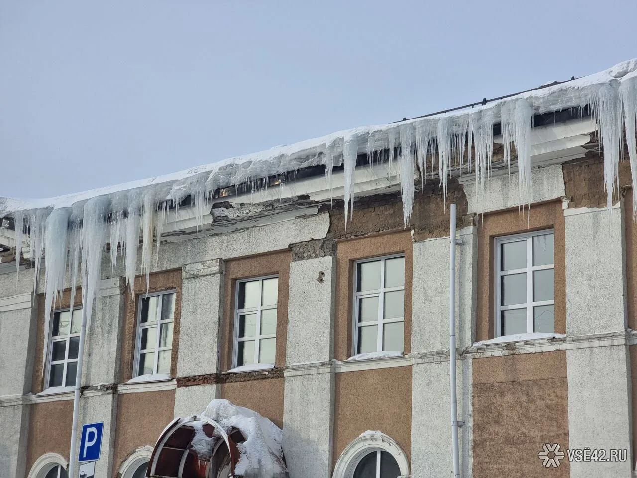 На доме, где когда-то располагался развлекательный клуб "Континент", выросли сосульки словно из фильма ужасов, на что пожаловалась читательница VSE42.