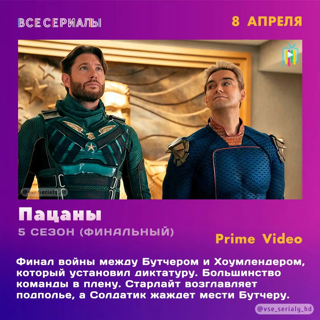 📅 Финал «Пацанов», новый сезон «Эйфории», продолжение «Рассказа Служанки» и ещё много всего интересного - уж на этой неделе