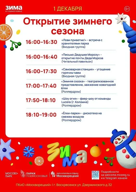 ❗️1 декабря парк усадьбы "Кривякино" и парк «Москворецкий» открывают долгожданный зимний сезон!