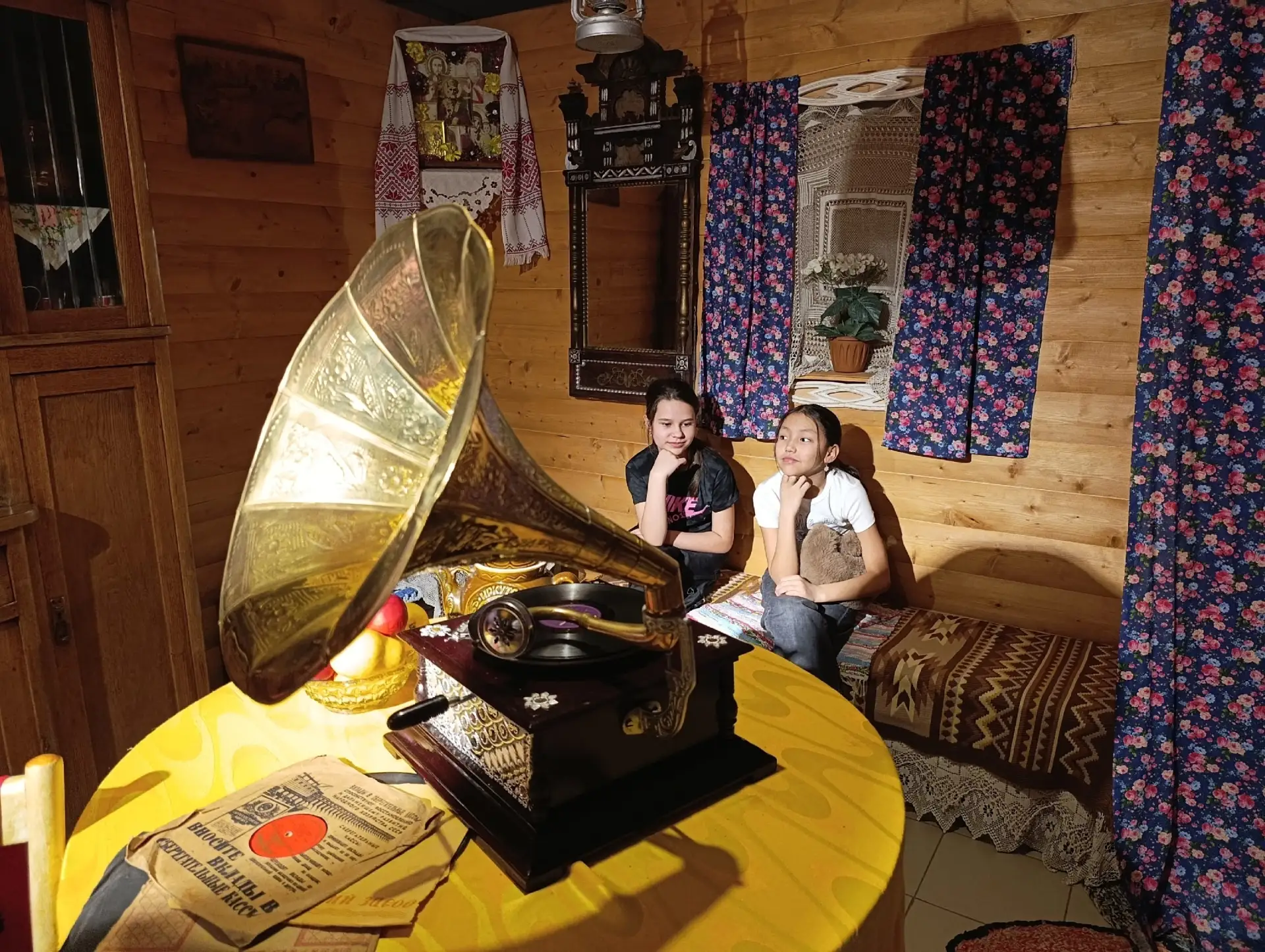 Посетители, помимо прочего, смогут увидеть и масштабный экспонат − занавес Бурятского кукольного театра «Ульгер», являющийся воспроизведением работы Аллы Цыбиковой. Он выполнен в технике аппликации с применением шелка, бархата, бисера и декоративной тесьмы.