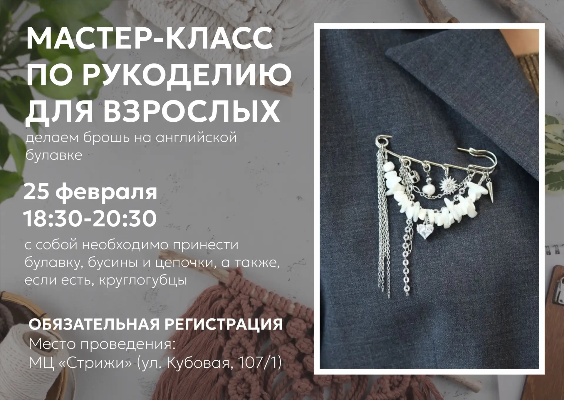 Приглашаем на мастер-класс для взрослых по рукоделию 😊