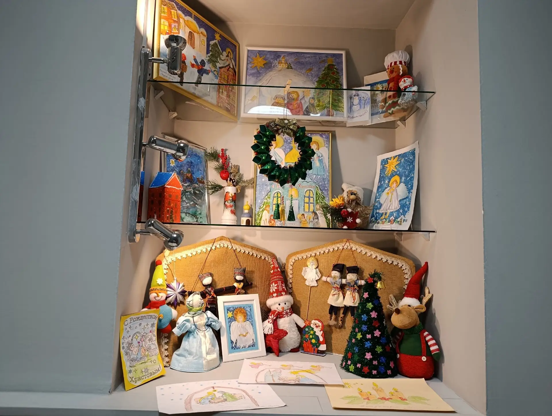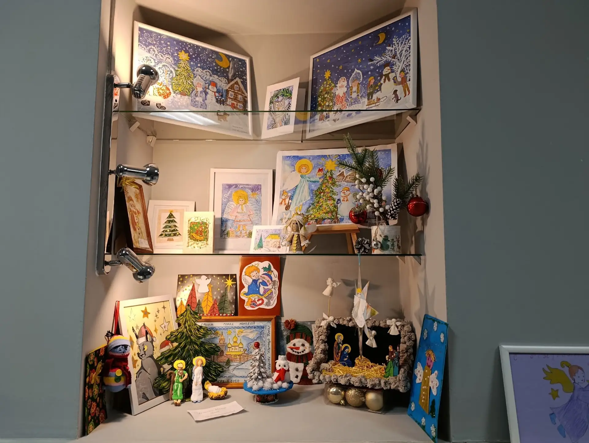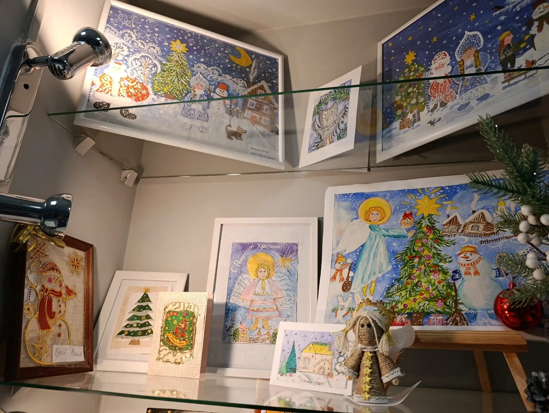 Смотрите в карусели фотографии поделок и рисунков, наполненных детским взглядом на рождественскую атмосферу, историю и дух праздника.