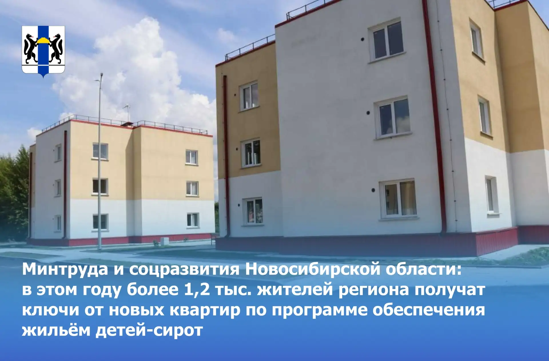 Минтруда и соцразвития Новосибирской области: в этом году более 1,2 тыс. жителей региона получат ключи от новых квартир по программе обеспечения жильём детей-сирот