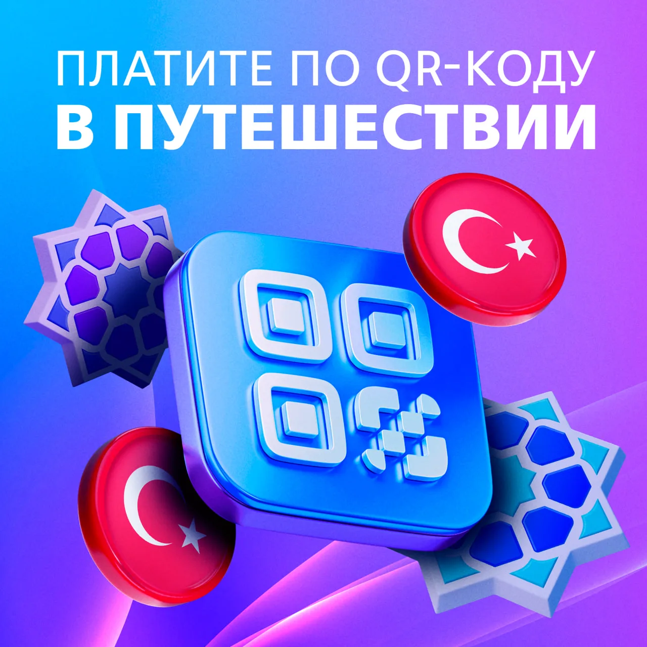 Сканируйте QR на чеке или терминале, оплачивайте рублями, и мы сами переведём их в валюту по выгодному курсу. Комиссии нет, а лимит одной операции до 350.000₽.