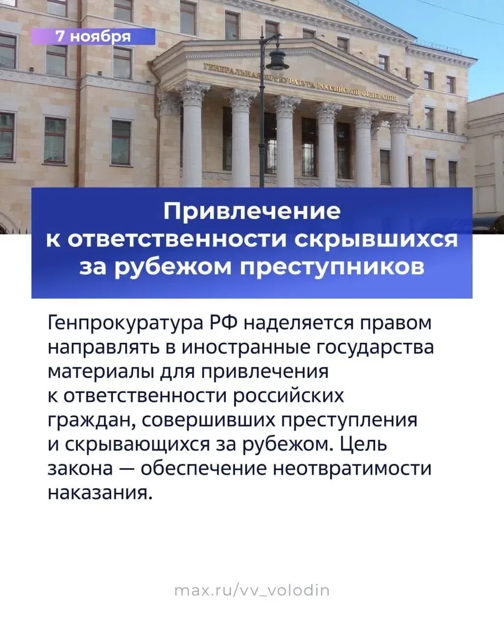 В ближайшее время приступим к рассмотрению законопроектов, которыми в отношении тех, кто покинул Россию и был осуждён за совершение преступлений и ряда административных правонарушений против нашей страны, предлагается ввести дополнительные временные ограничительные меры.