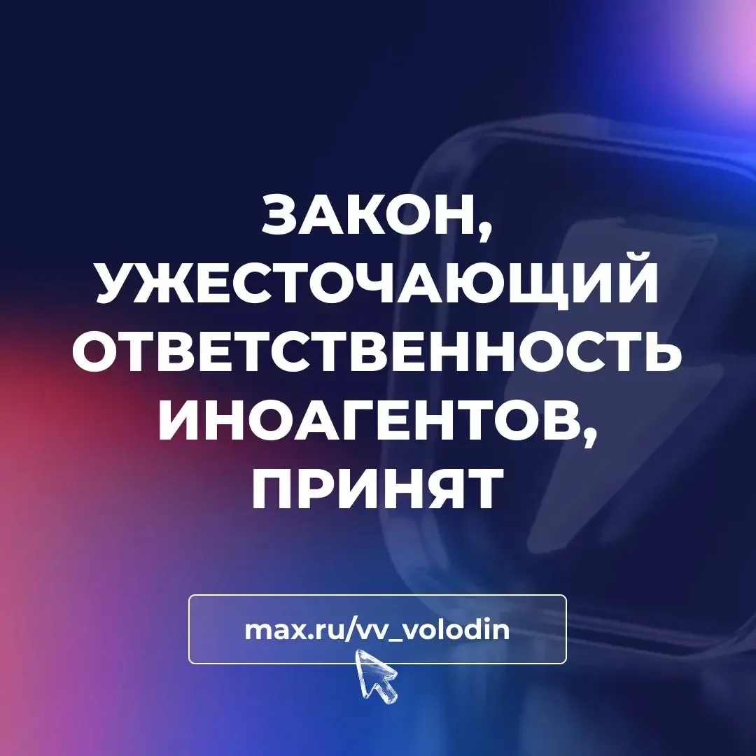⚡️ Закон, ужесточающий ответственность иноагентов, принят