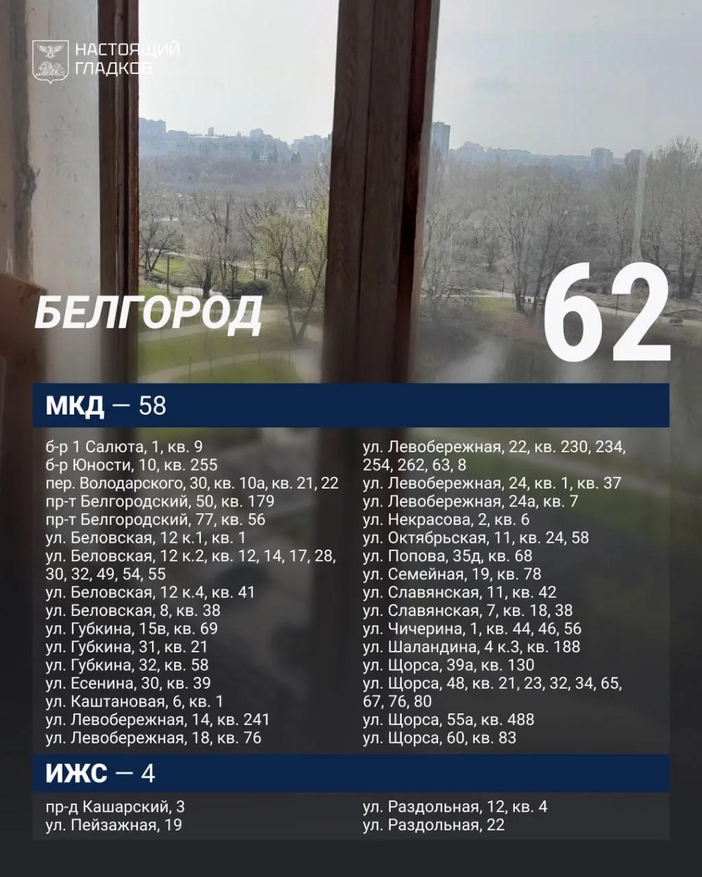 В Белгороде за прошлую неделю восстановлено 62 объекта. За этот же период повреждения выявлены в 17 жилых помещениях, а также по 37 автомобилям.