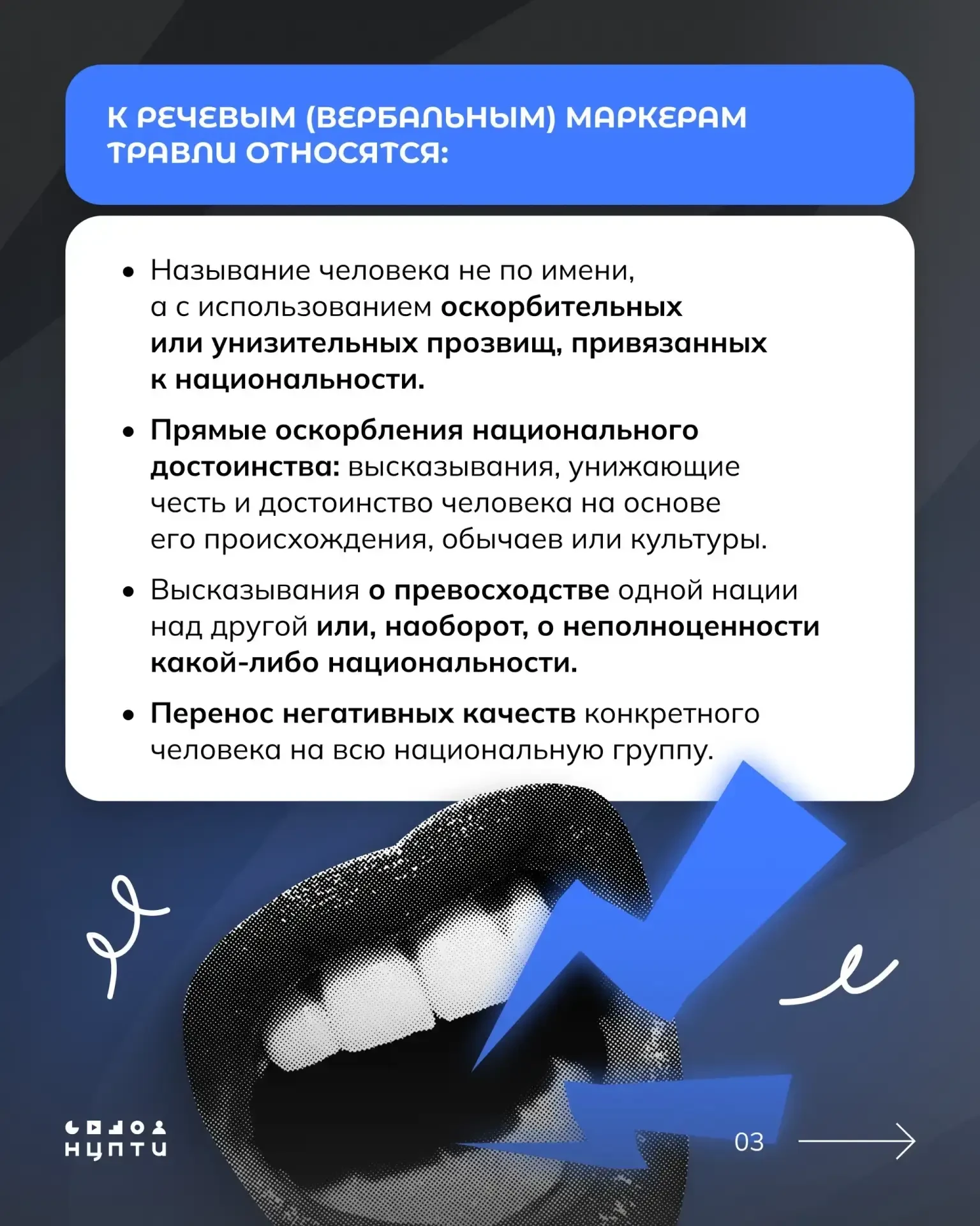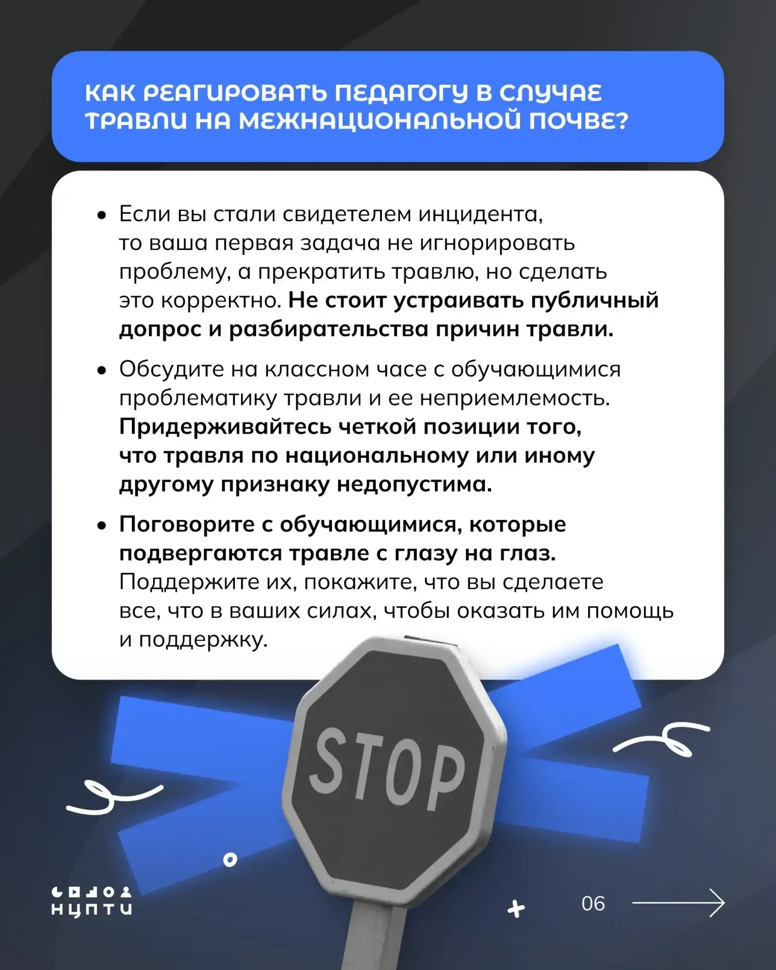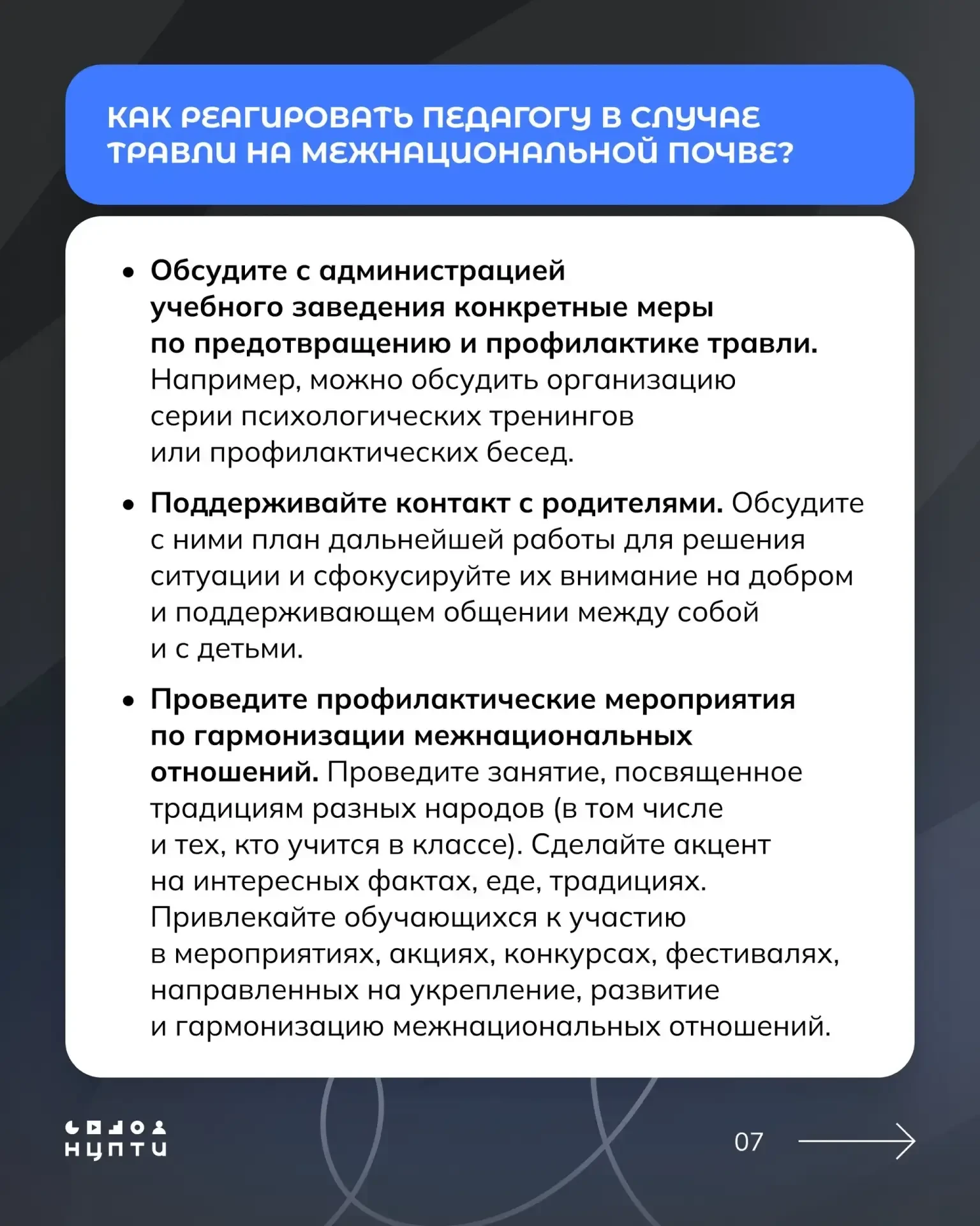 В карточках разобрали признаки травли по национальному признаку и алгоритм действий педагога.