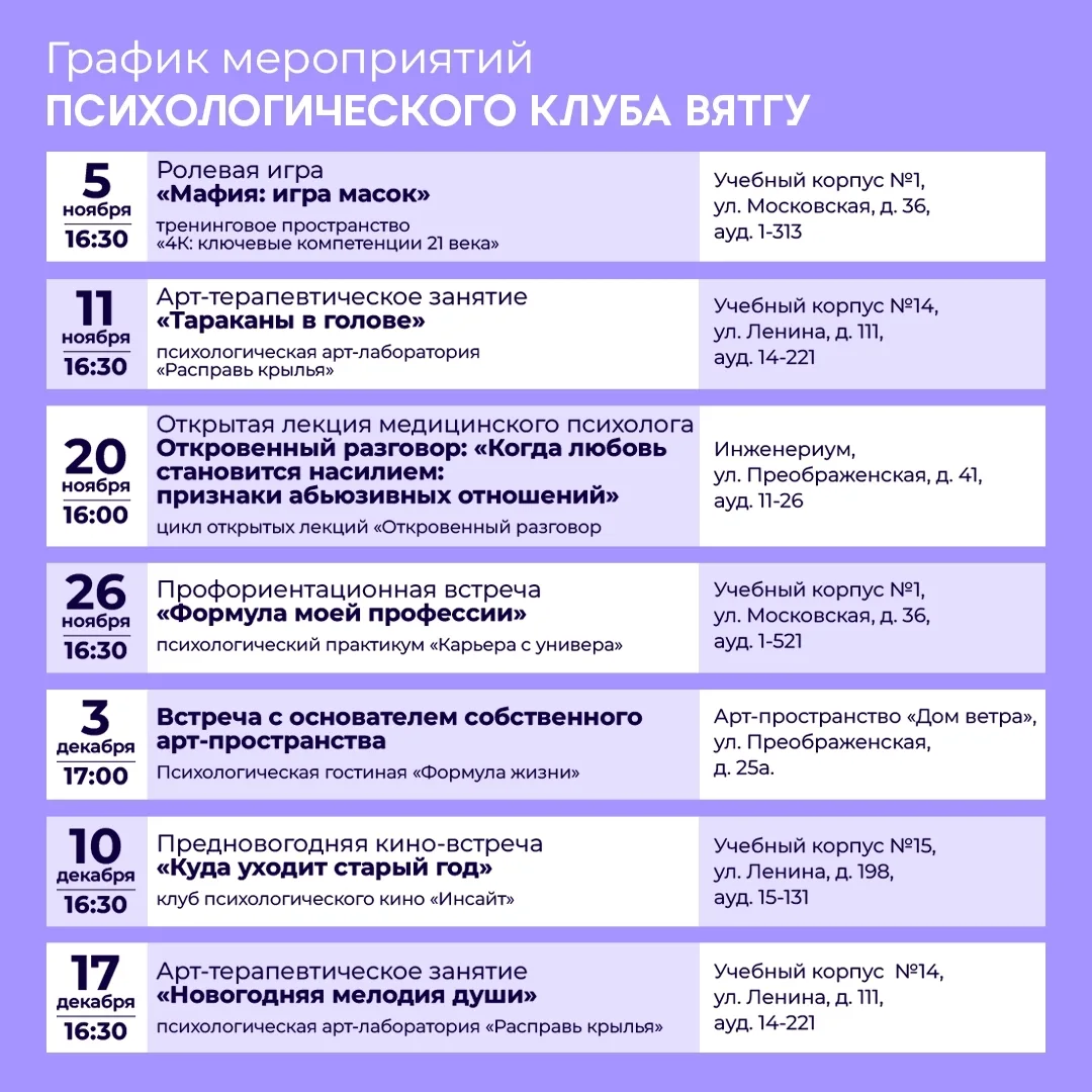 В ноябре и декабре много мероприятий 💯 Например, от Психологической службы ВятГУ 😉
