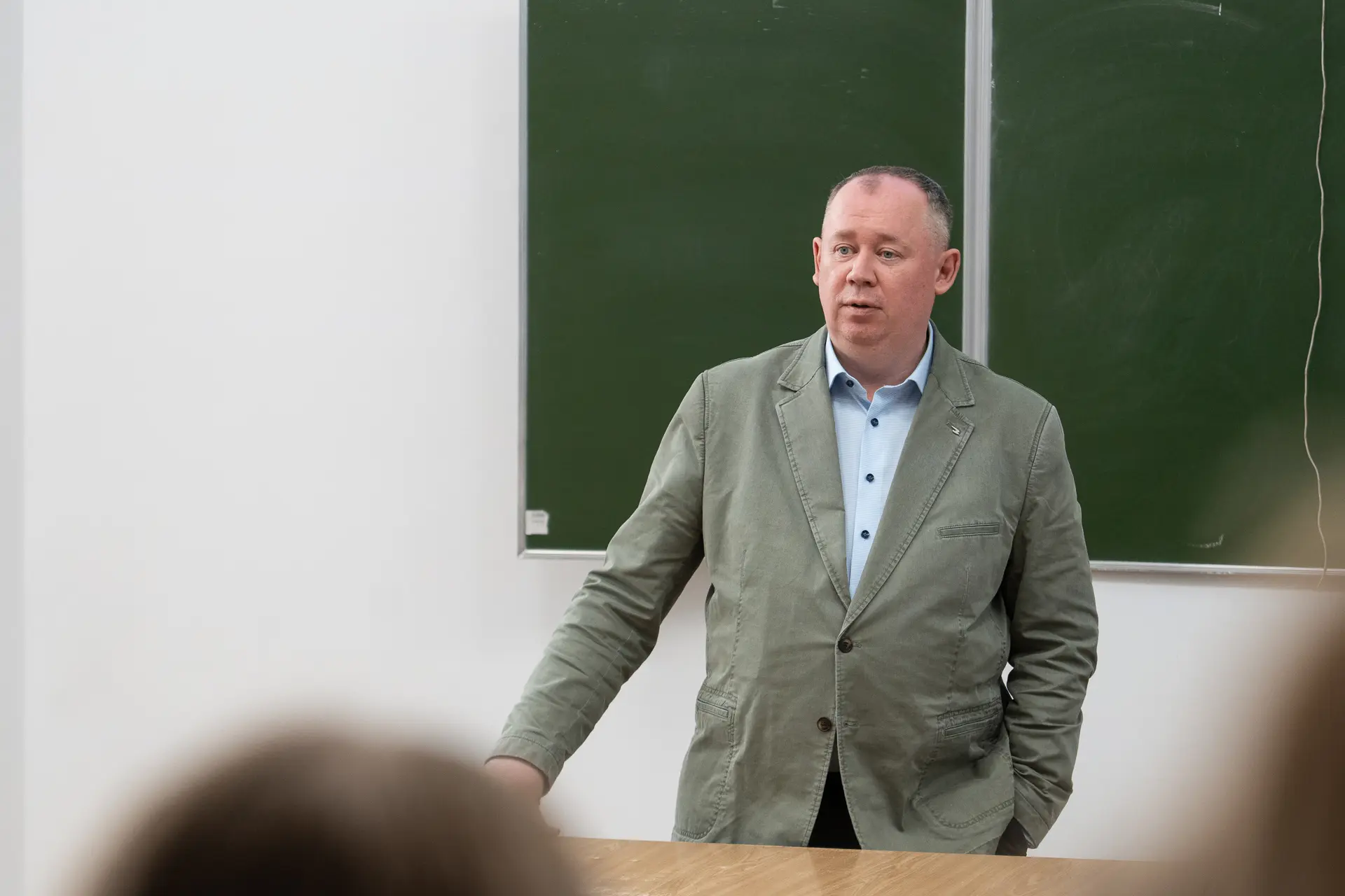 Андрей Анатольевич рассказал студентам об идеологии национал-социализма, псевдонаучной расовой теории и чудовищных преступлениях нацистов, совершенных в бывших советских республиках и на территории современной России.