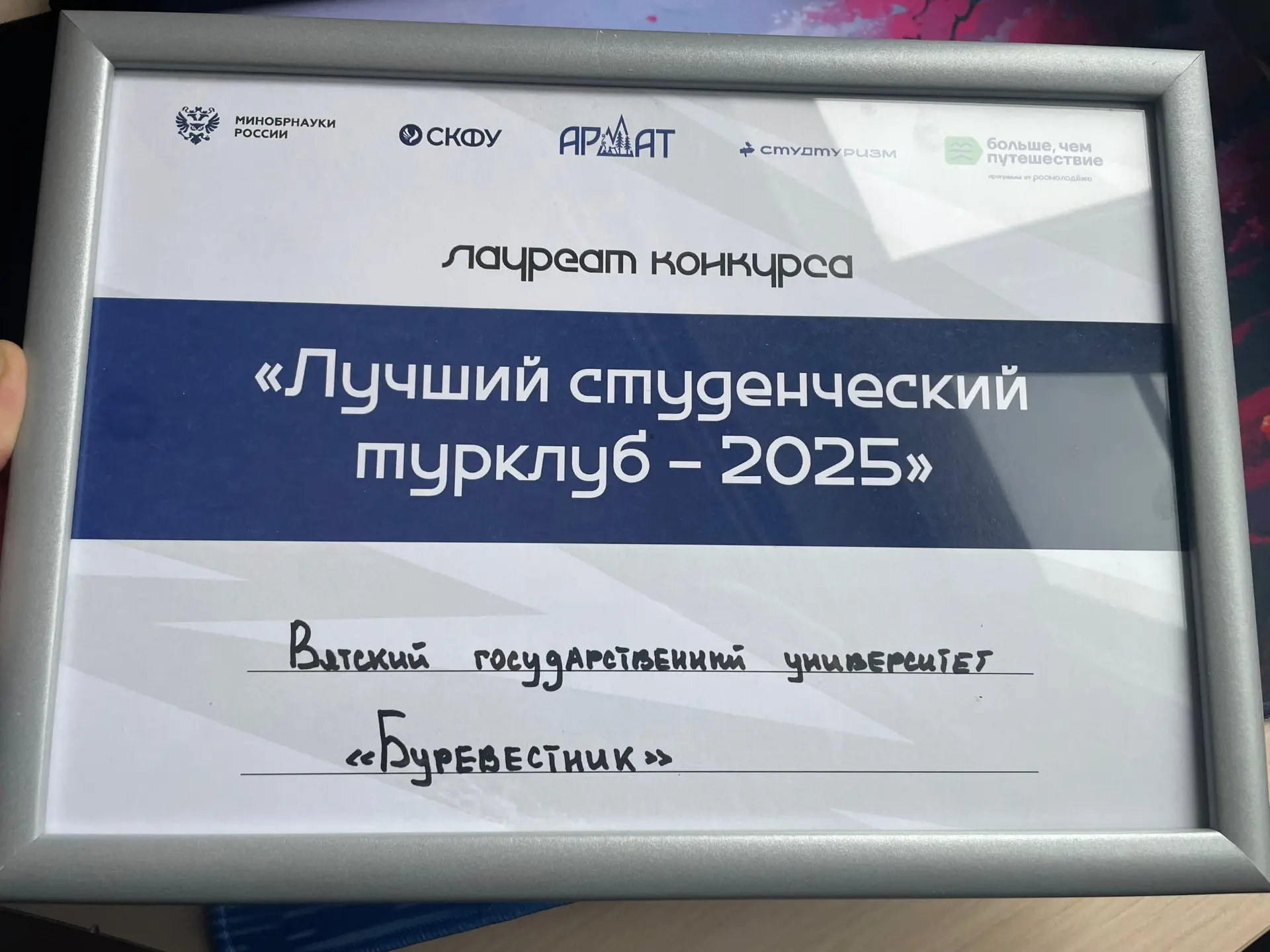 Турклуб ВятГУ «Буревестник» — лауреат Всероссийского конкурса на форуме «СТУДТУРИЗМ 2025» 🏆