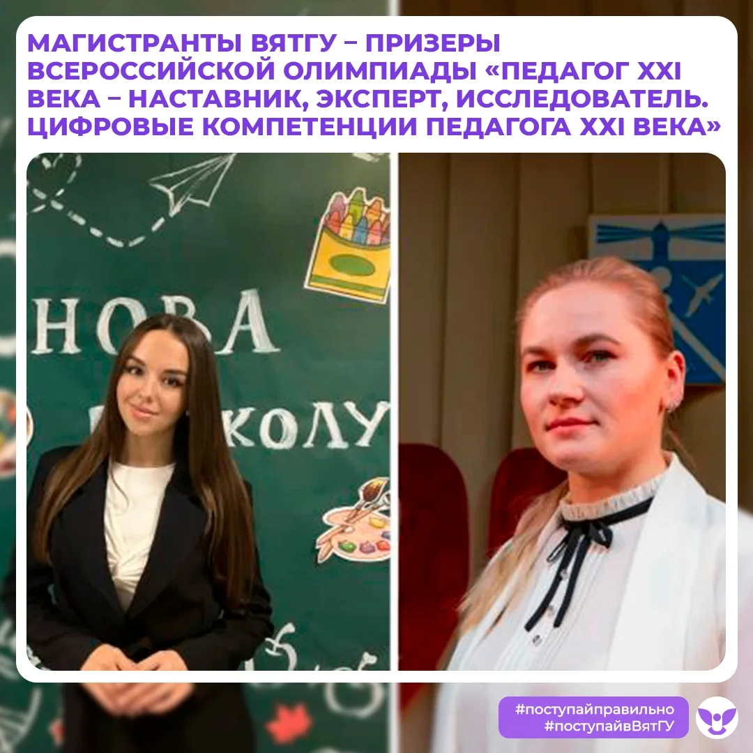 🏆 Магистранты ВятГУ – призеры Всероссийской олимпиады «Педагог XXI века – наставник, эксперт, исследователь. Цифровые компетенции педагога ХХI века» 🏆