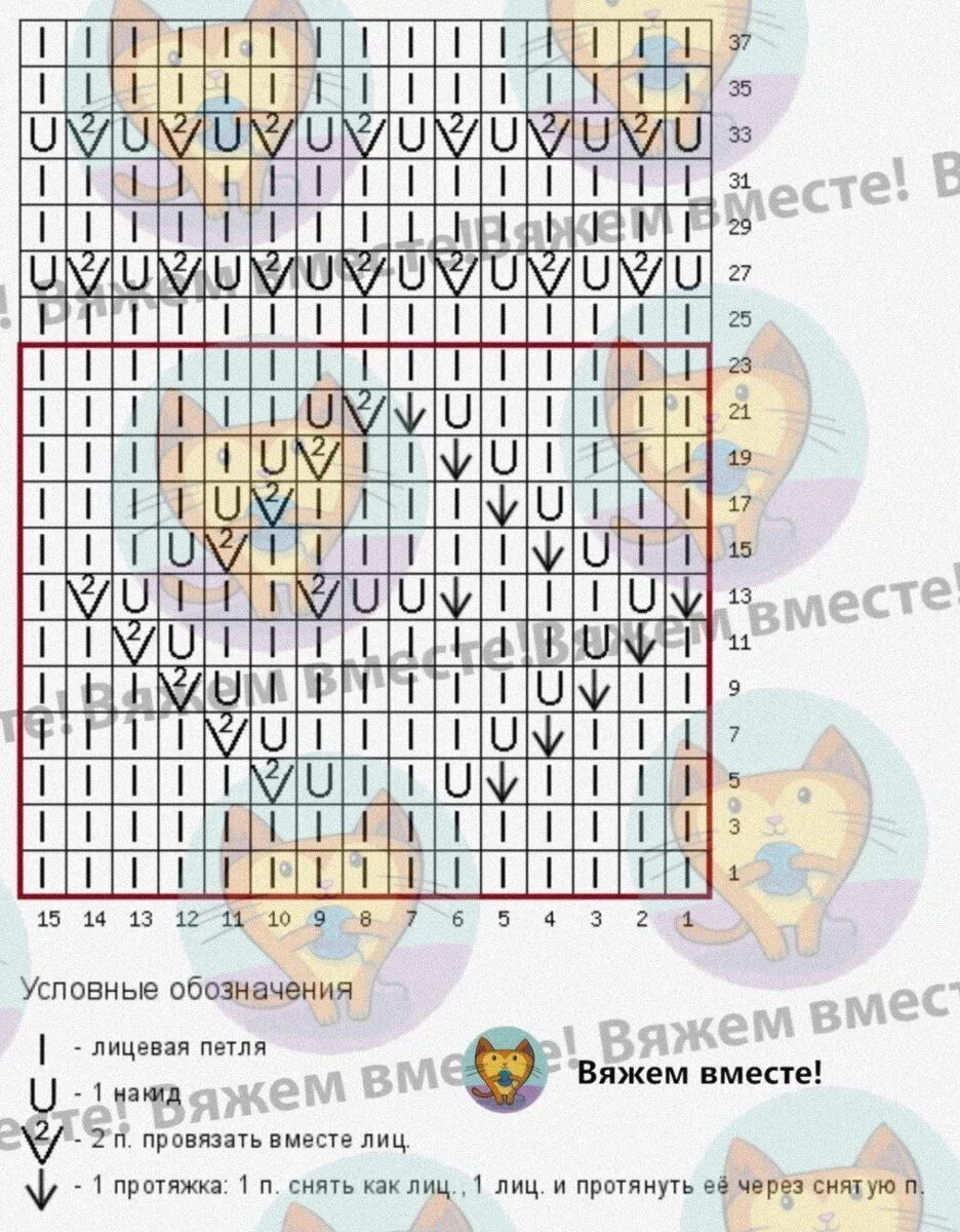 Ряд 6: *(две петли провязать вместе как изнаночную) – повторять от * до конца ряда.
