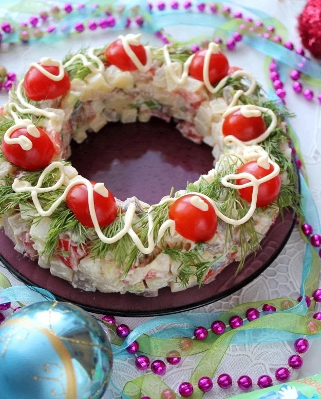 Салат оформляем в виде венка - оригинально и красиво!