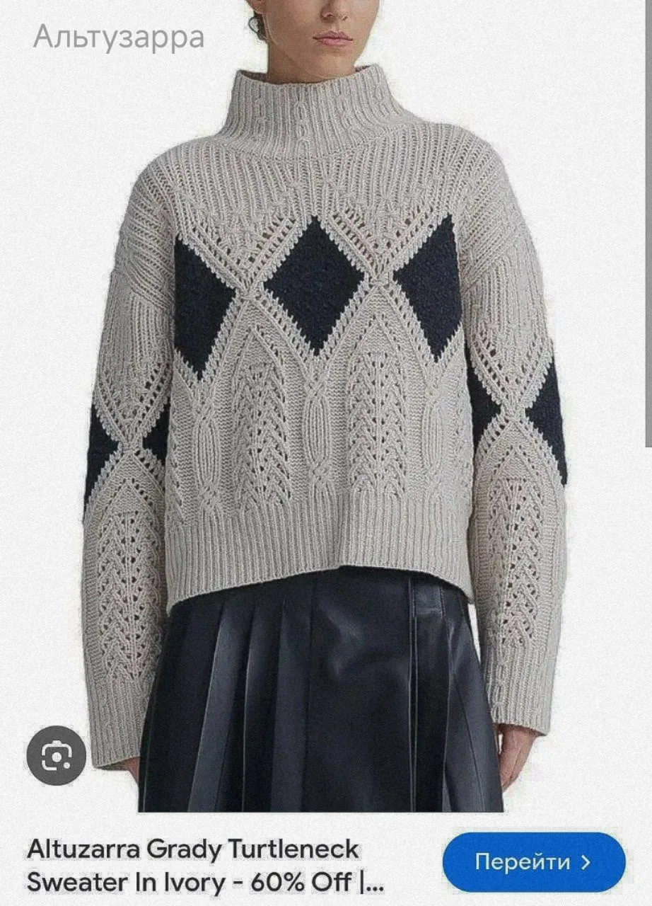 Прямо сейчас рисую схему для этой модели. Джемпер от Twinset очень напоминает популярную модель Альтузарра.