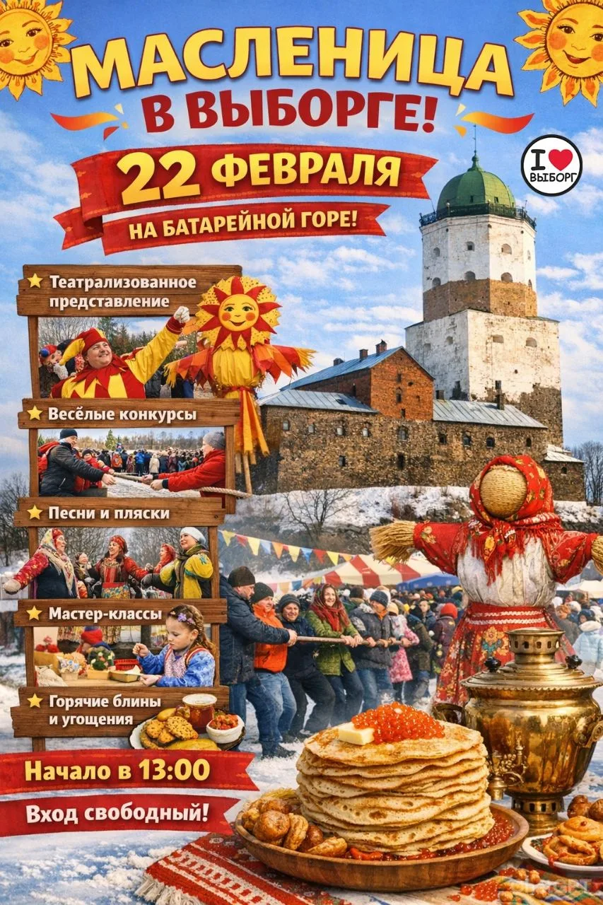 В этом году празднование Масленицы вернули на Батарейную гору. Гулянья пройдут 22 февраля, начало в 13:00.