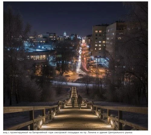 - Освещённая лестница на Батарейную гору и удобные пешеходные маршруты;