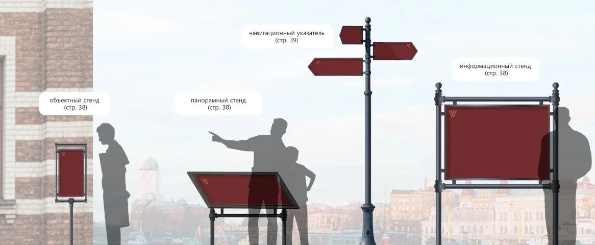 - Информационные стенды и сенсорные инфокиоски для навигации по городу.