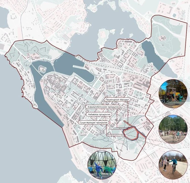 - Новое уличное освещение, пешеходные переходы, велопарковки, скамейки и современная система сбора отходов;