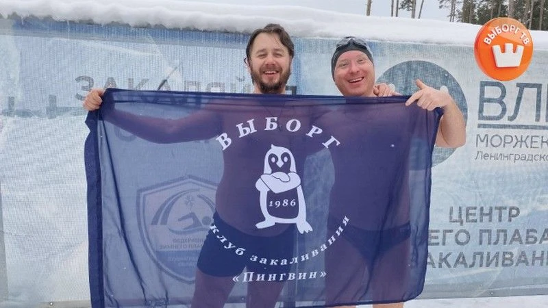 Члены выборгского клуба закаливания «Пингвин» участвовали в заплывах. Все трое успешно преодолели дистанции 25 и 50 метров и даже завоевали медали.