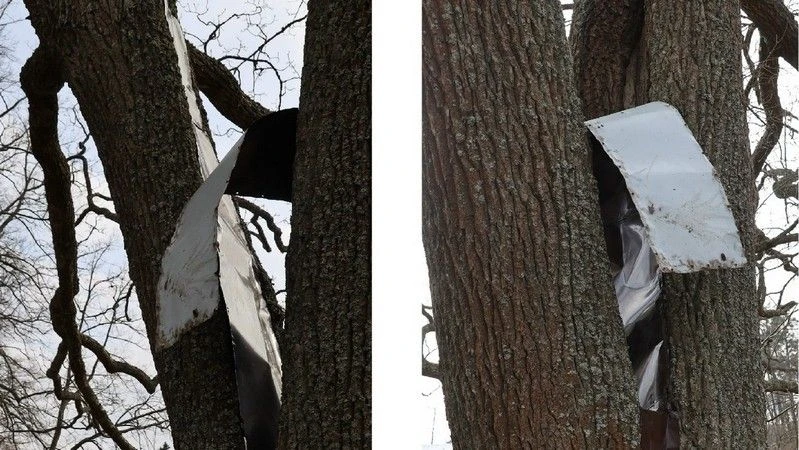 Сотрудники парка Монрепо поделились с подписчиками огорчением: на одном из дубов под Чайной беседкой повреждена поддерживавшая его металлическая пластина.