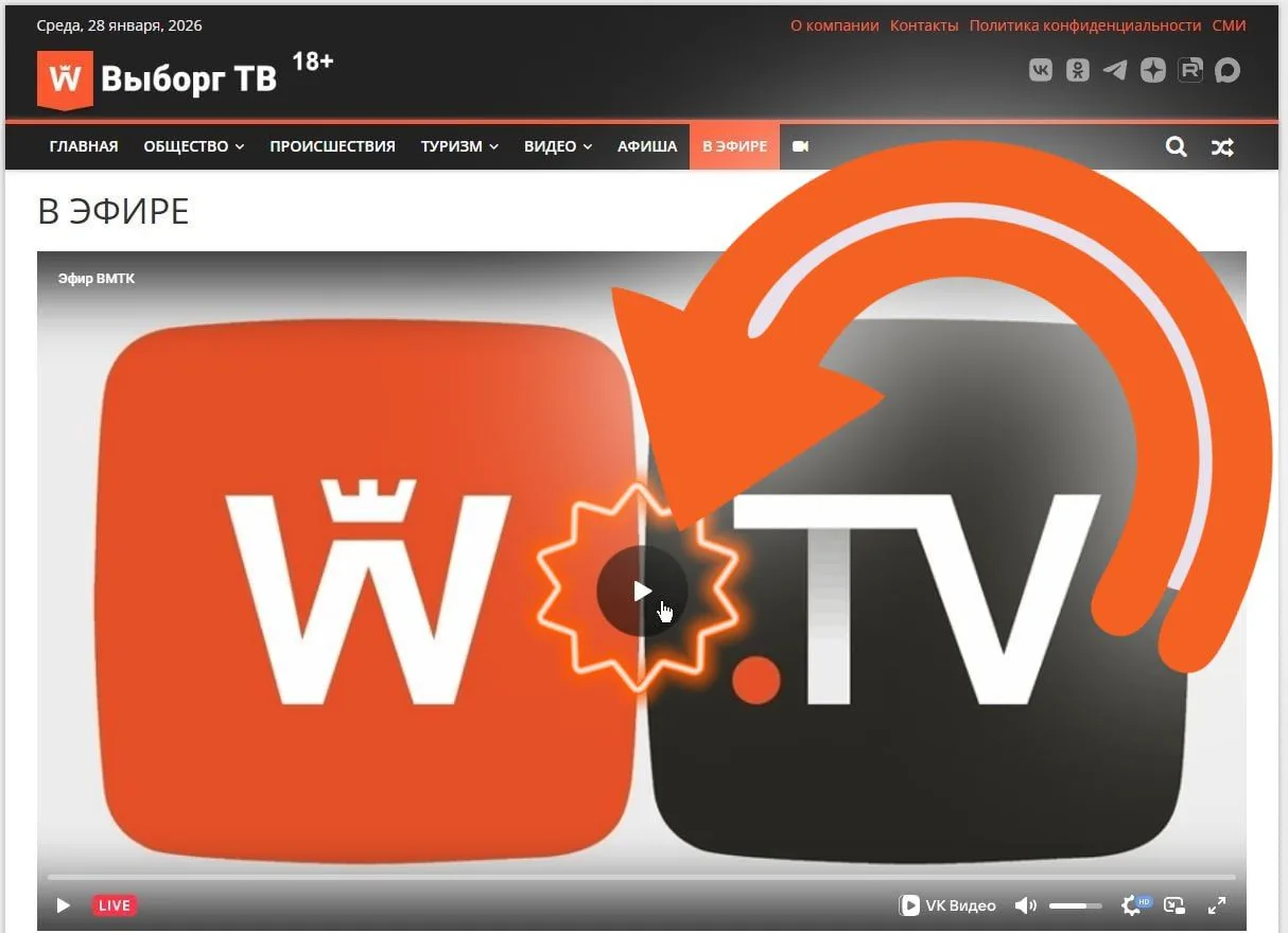 Вариант №6: посты Выборг ТВ доступны в мессенджерах МАКС max.ru/vyborgtv, Телеграм t.me/vyborg_tv Выборг ТВ и в сообществе во ВКонтакте vk.com/vyborgtv.