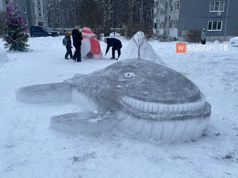 Местный житель Алексей Ляхов по традиции радует земляков снежными скульптурами. Пока здесь появились кит и Дед Мороз. В планах слепить сову и символ 2026 года - лошадь.