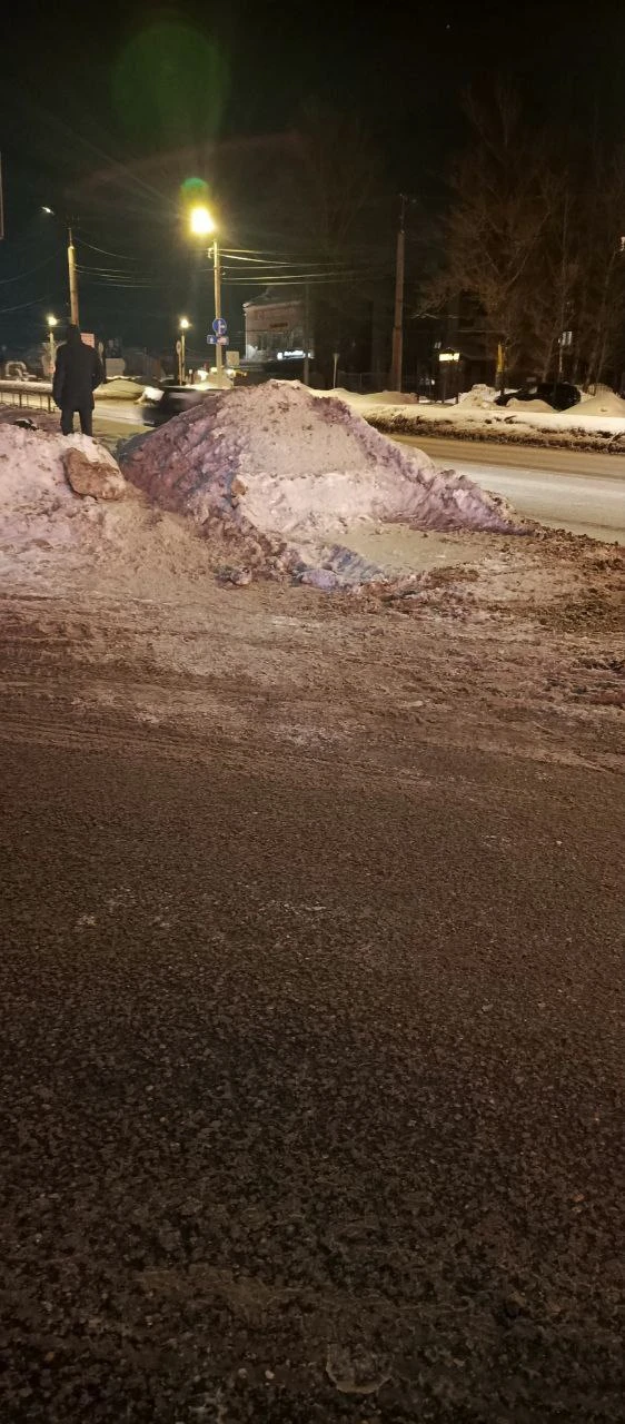 Выезд с заправки Роснефть на Верхний Волок навалили горку, легковушек не видно велосипедистов тем более.