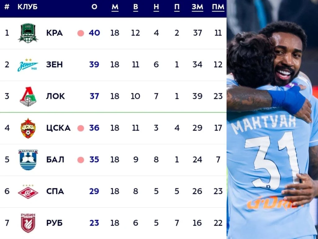 ⚡️«Зенит» ушел вторым на зимнюю паузу: сине-бело-голубые набрали столько же очков, сколько год назад и отстают от лидирующего «Краснодара» на 1 очко – очная встреча команд состоится в апреле на «Газпром Арене»