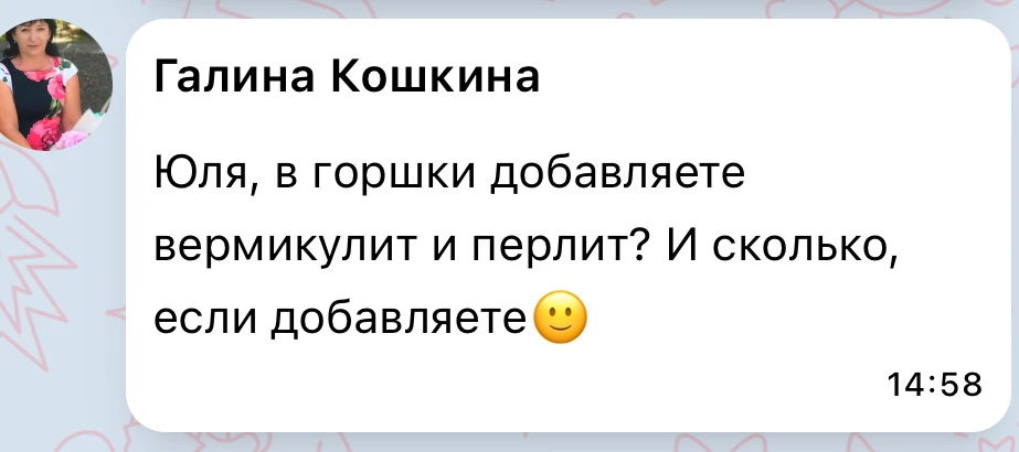 Перлит и вермикулит не добавляю, попадается грунт уже с добавками, а если нет - то и нет🙂