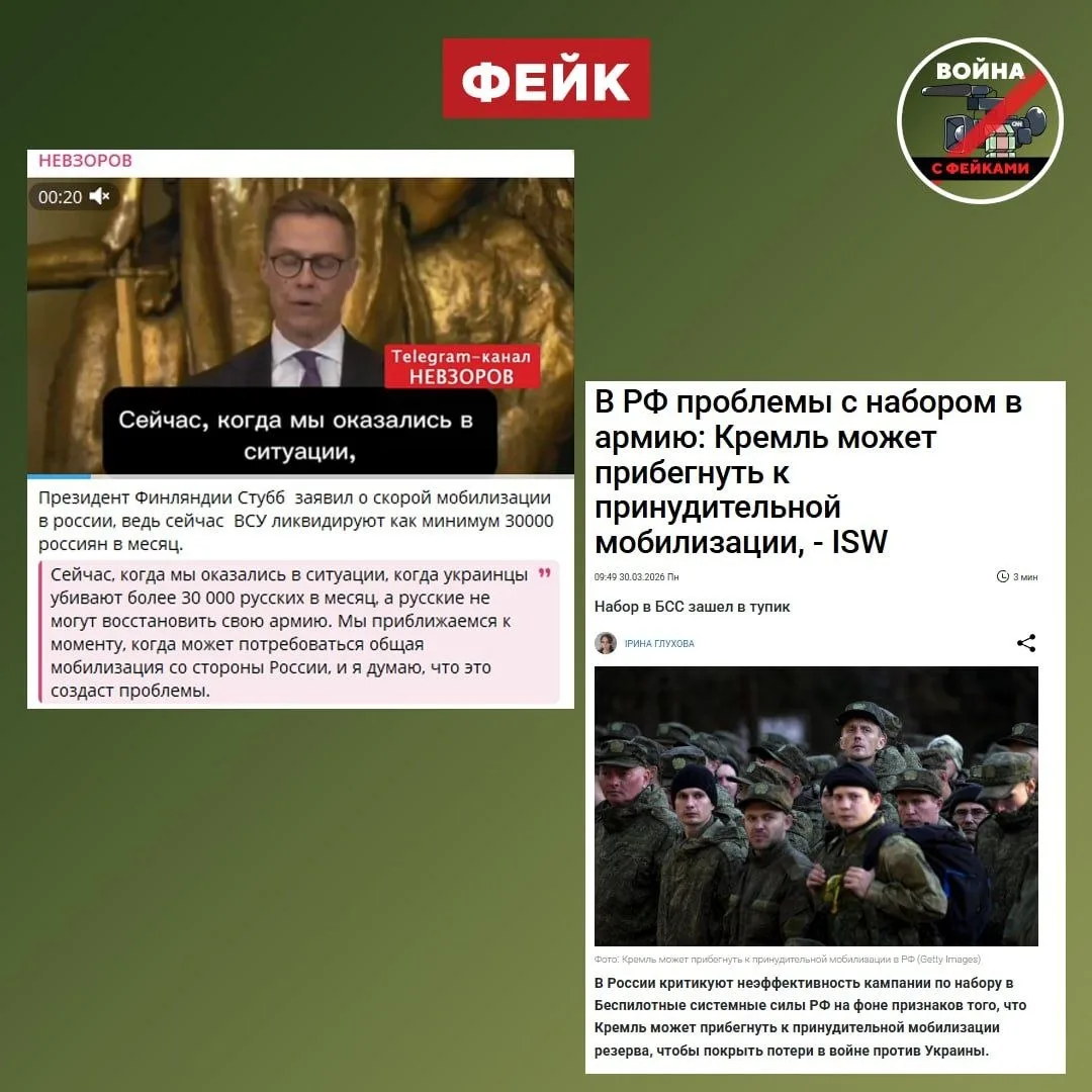 Фейк: В России грядет новая волна мобилизации. Об этом сообщили украинские СМИ и президент Финляндии Александр Стубб.