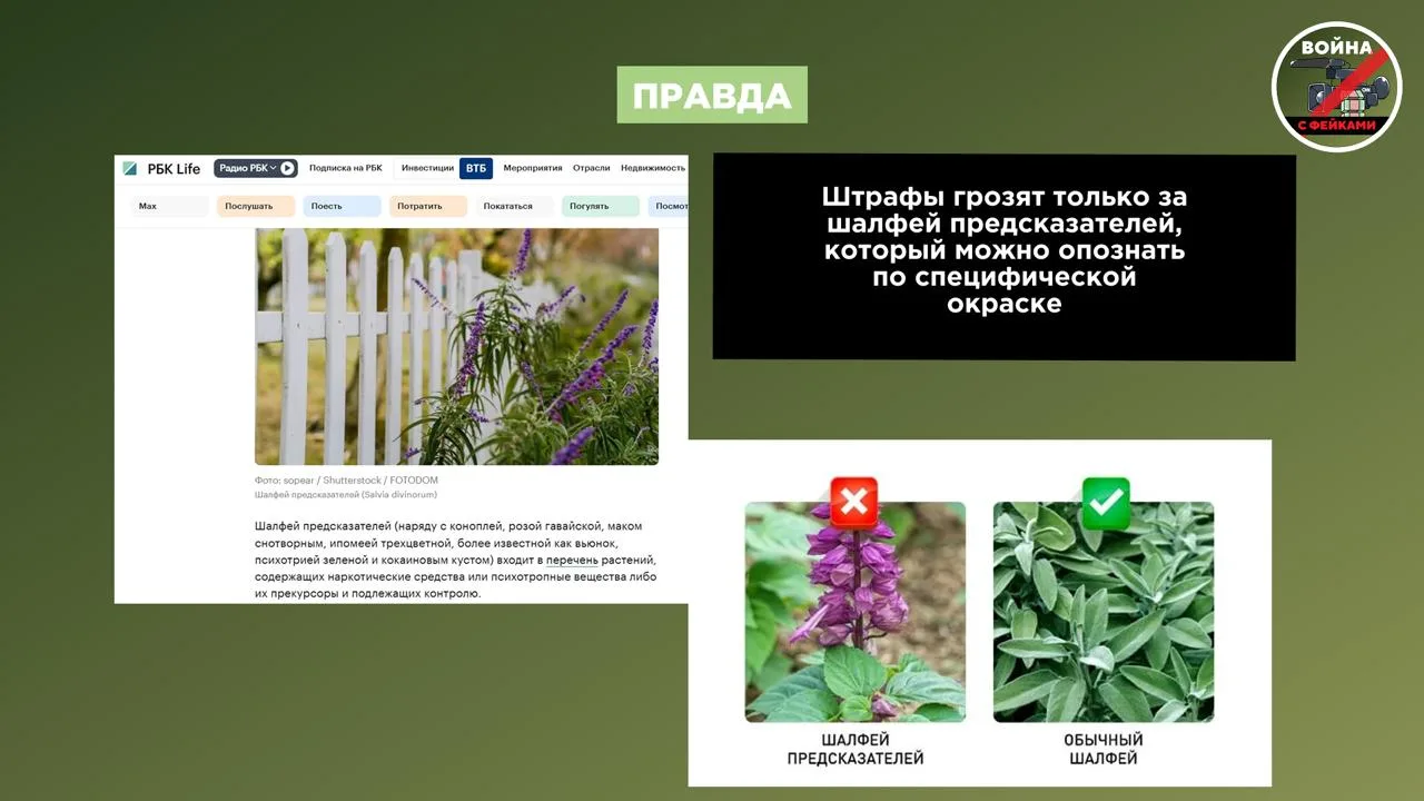 Фейк: Россиянам грозят штрафы и уголовная ответственность за выращивание шалфея. Об этом предупреждают в телеграм-каналах.