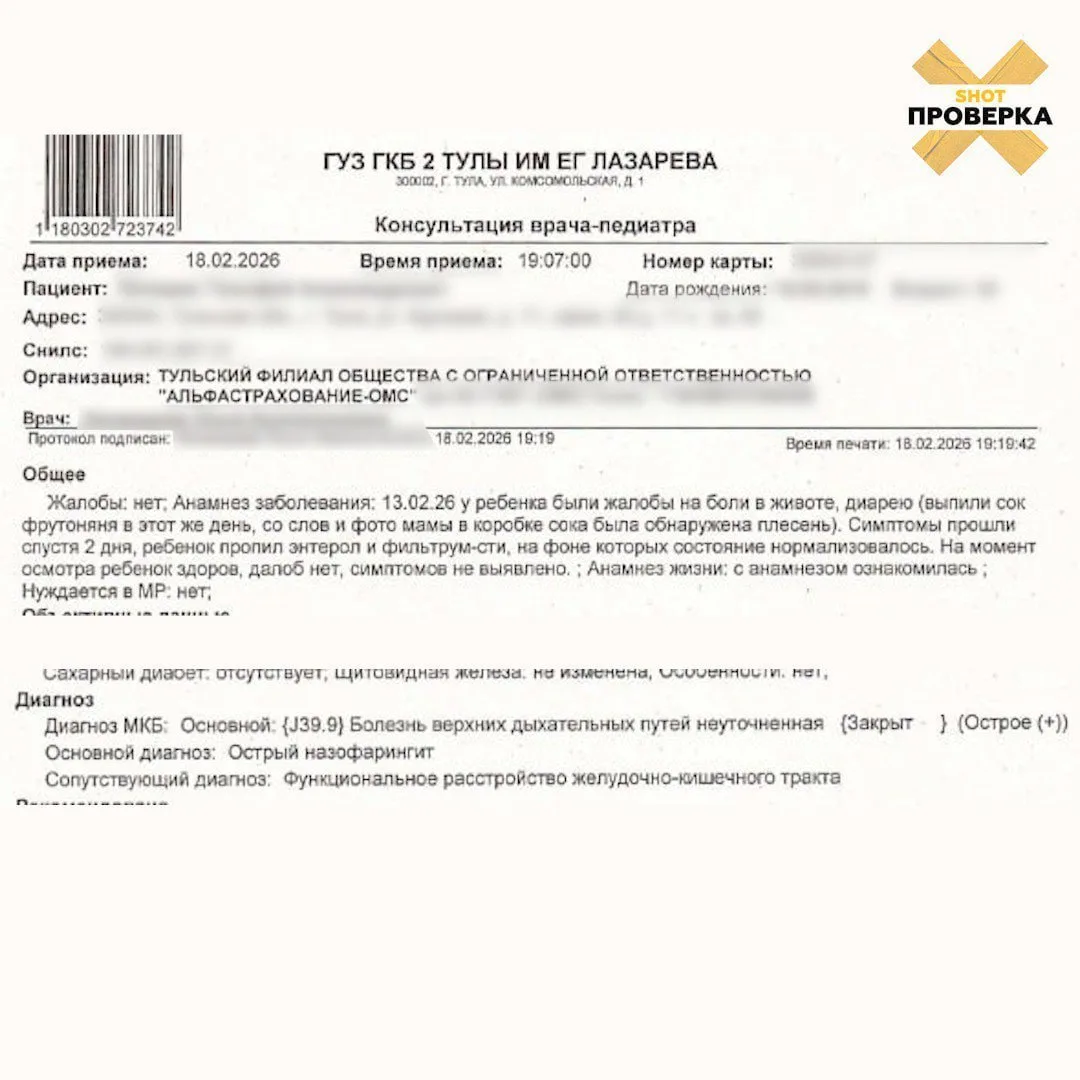 Мать Тимы направила претензию производителю — ОАО «Прогресс». Компания провела внутреннее расследование и заявила, что их вины нет, предположив, что причина могла быть в повреждении упаковки. При этом, по словам женщины, никаких признаков порчи до вскрытия не наблюдалось: сок не подтекал, упаковка не была вздутой. 📦