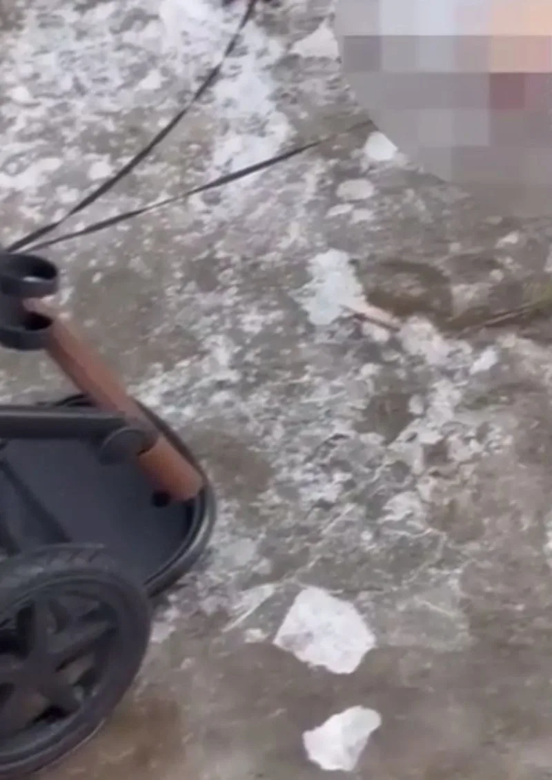 На записи с камеры домофона видно, как пласты снега падают в коляску с малышом. 🤱🎥