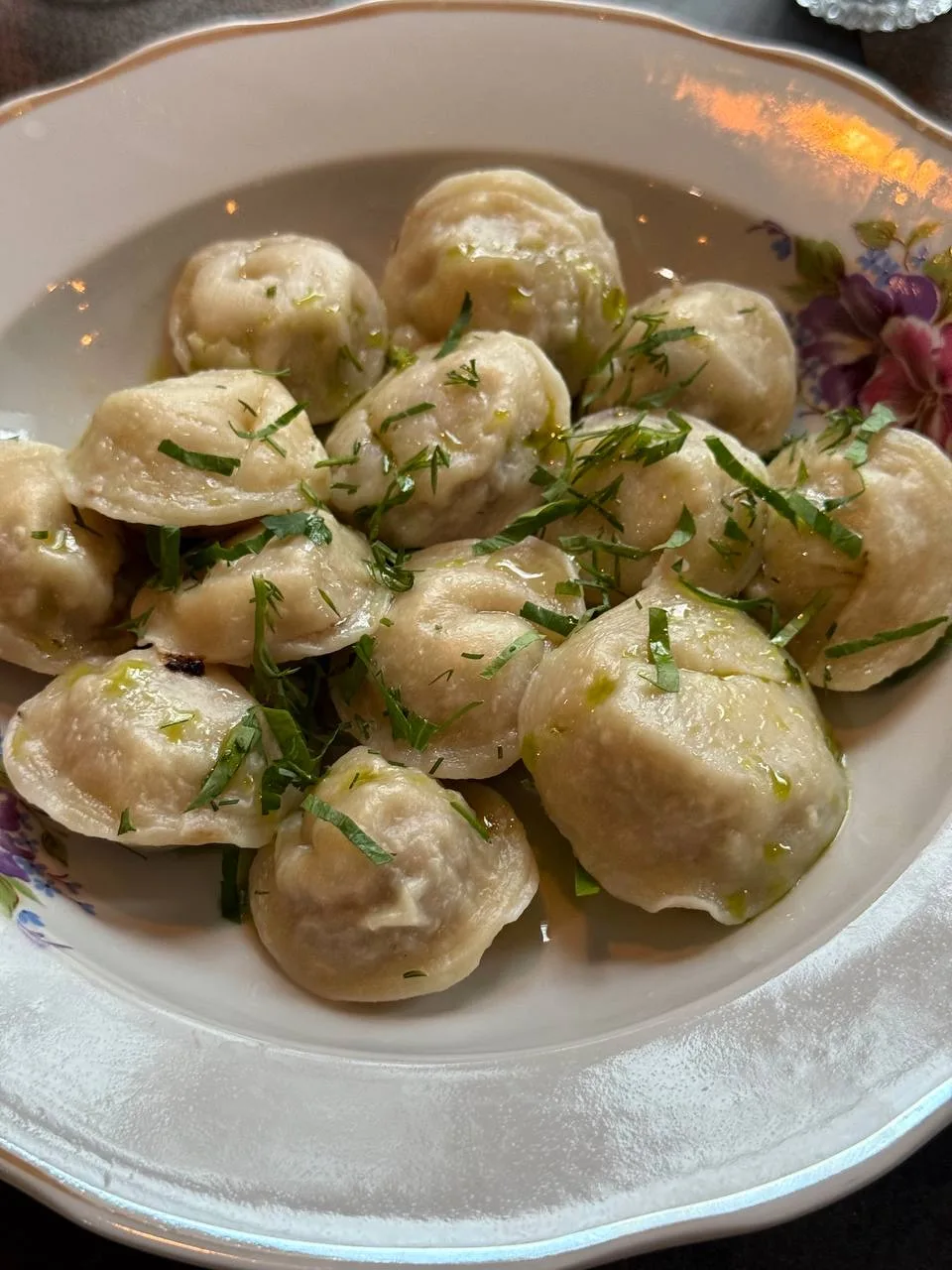 Кислые щи считаются визитной карточкой рюмочной. Настя добавила их в свой топ. Из горячего я рекомендую попробовать самолепные пельмени, мятый картофель с томленой щекой и пивным соусом, макароны по-флотски с перечным соусом и вареники с вишней.