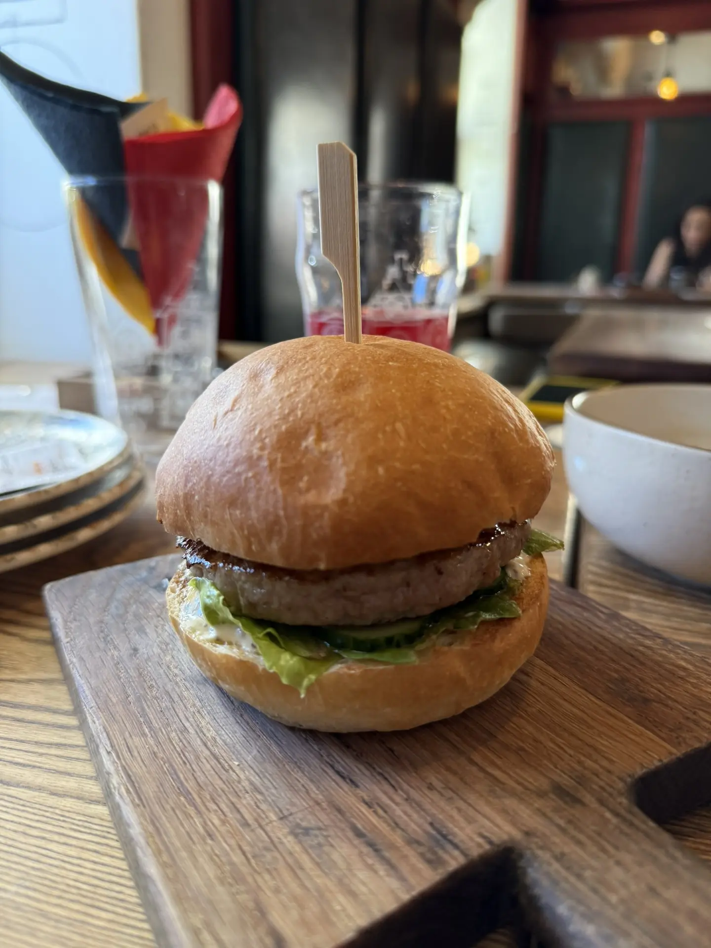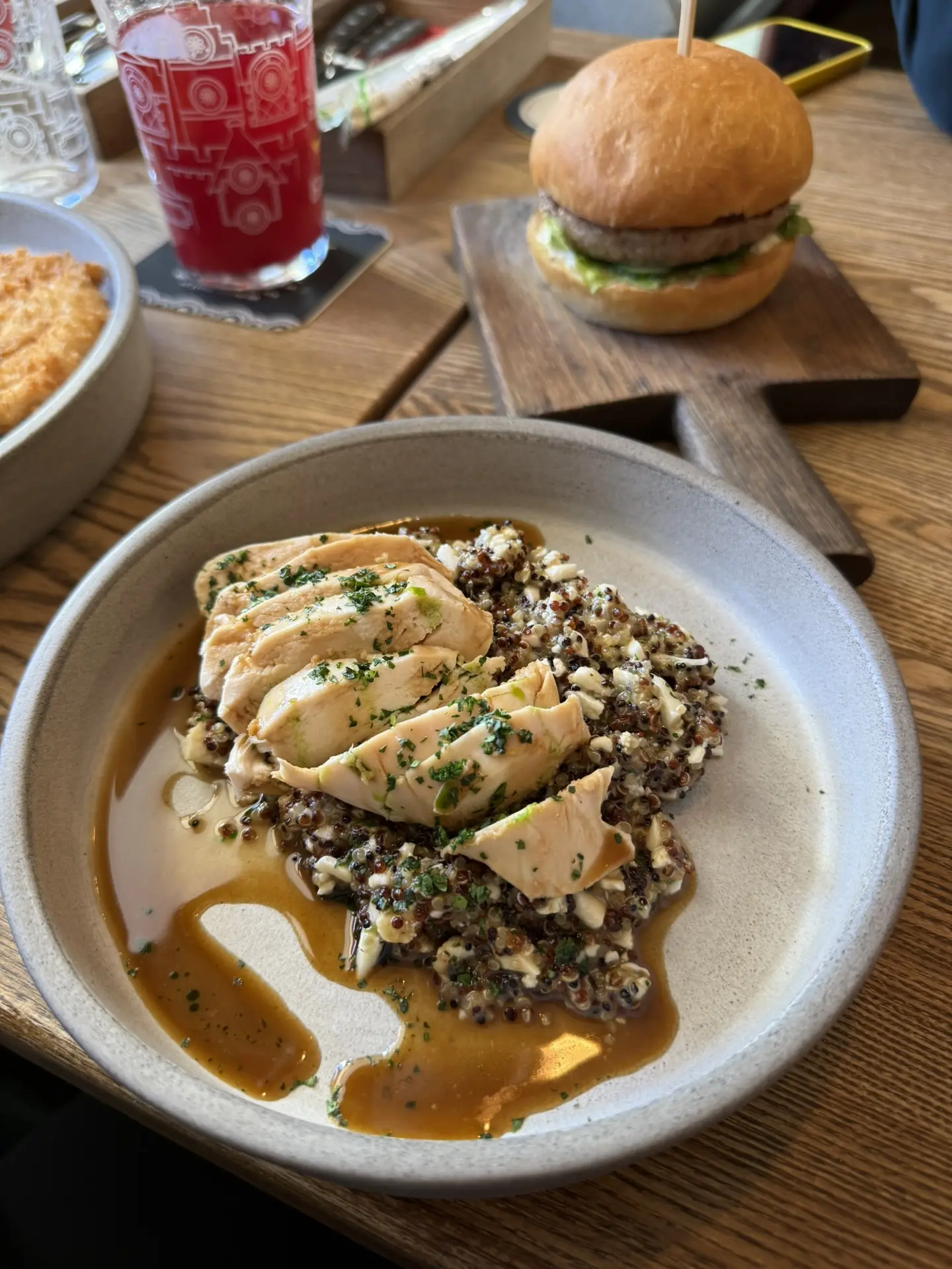 Из закусок нам понравился куриный паштет с брусничным соусом и пшеничным тартином, который отлично подойдет под настойки, выбор которых здесь достаточно большой.