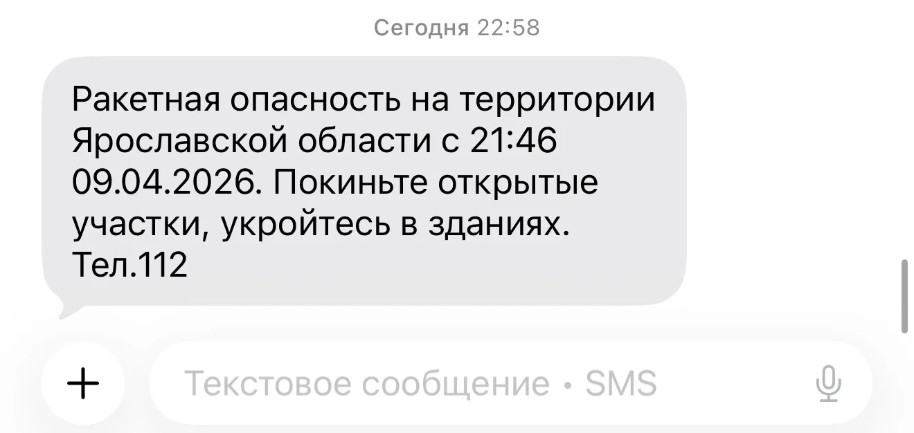 ‼️Отбой РАКЕТНОЙ ОПАСНОСТИ на территории Ярославской области с 23:16 09.04.2026г