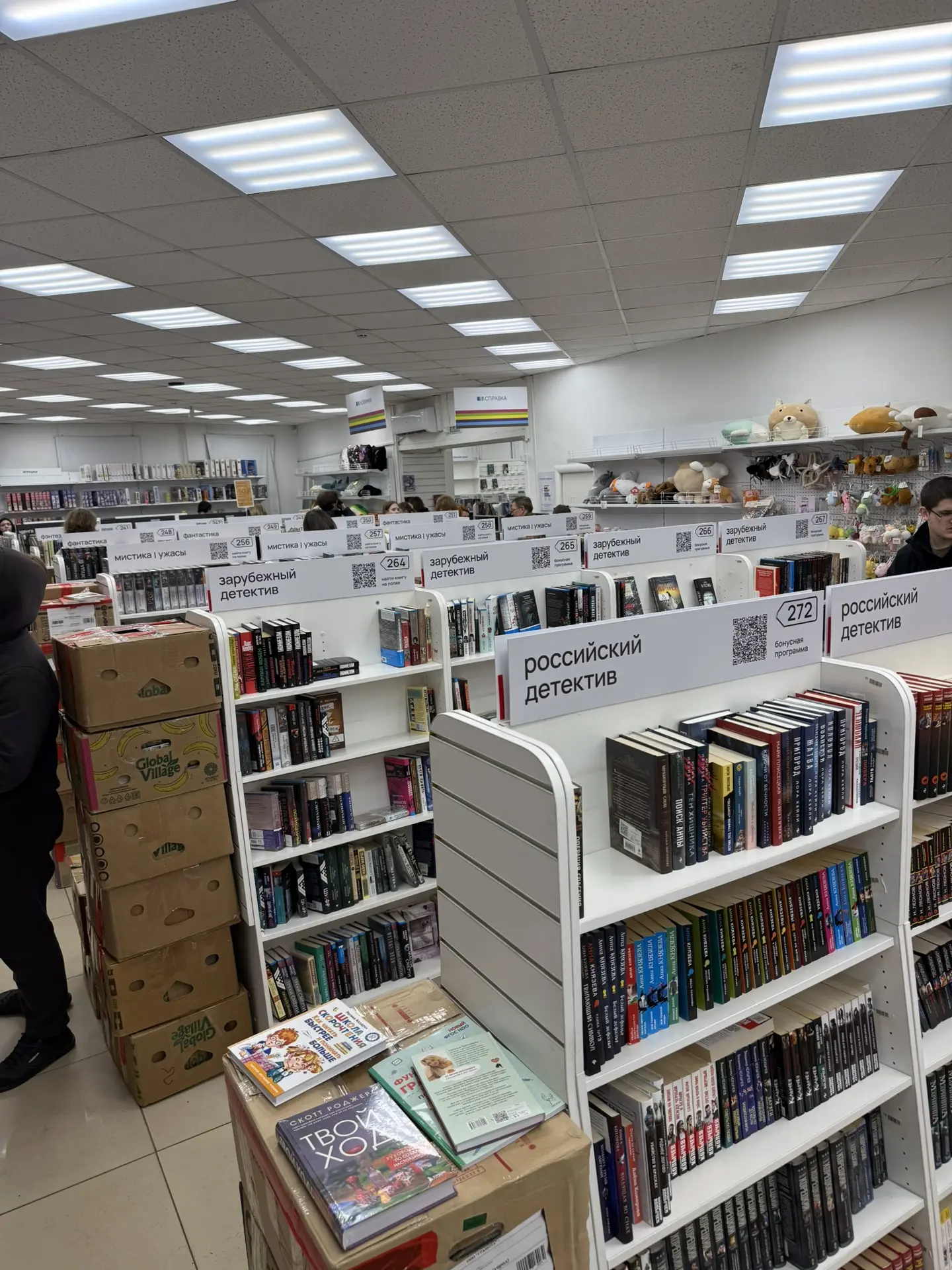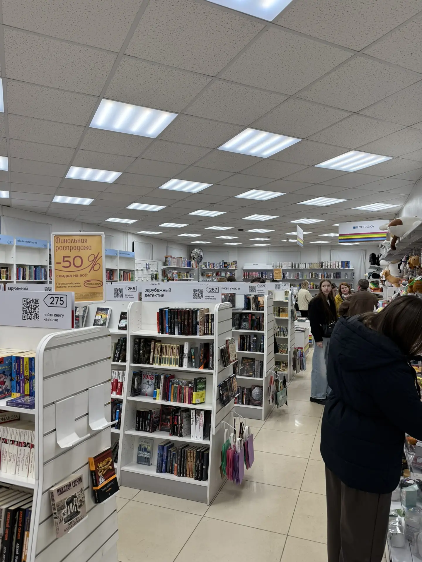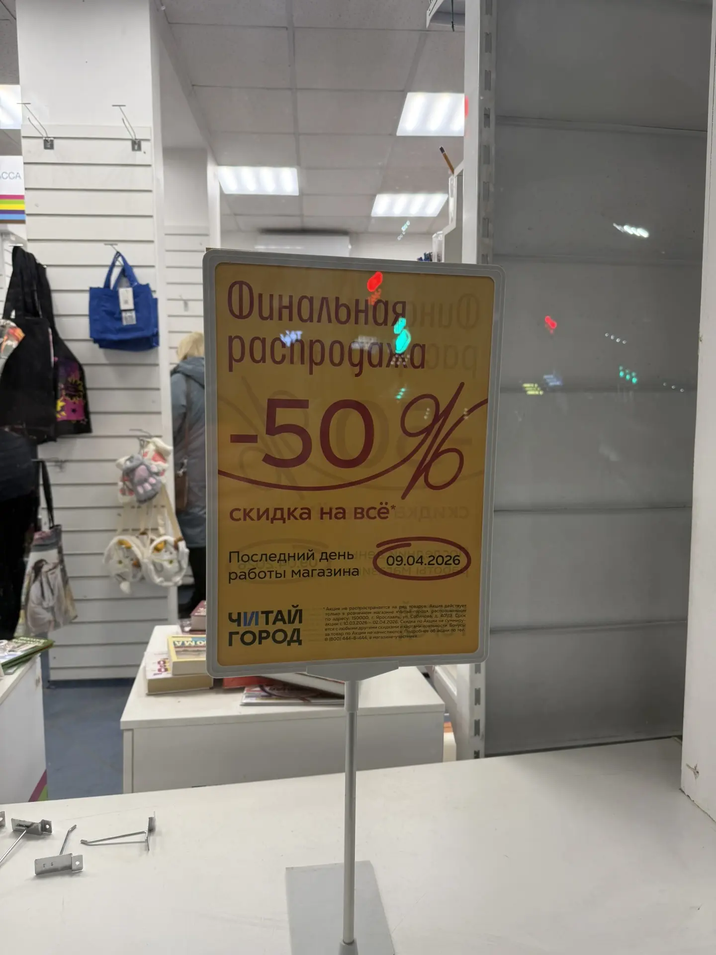 Весь ассортимент распродают со скидкой в 50%. Люди пачками выносят книги и настольные игры. Если хотите себе тоже что-то выгодное зацепить, то самое время идти в ближайшие дни. Разбирают очень быстро. Цены ниже, чем на маркетплейсах!