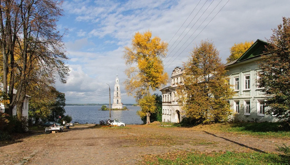 Город с визитной карточкой — знаменитой затопленной колокольней, стоящей прямо посреди Волги.