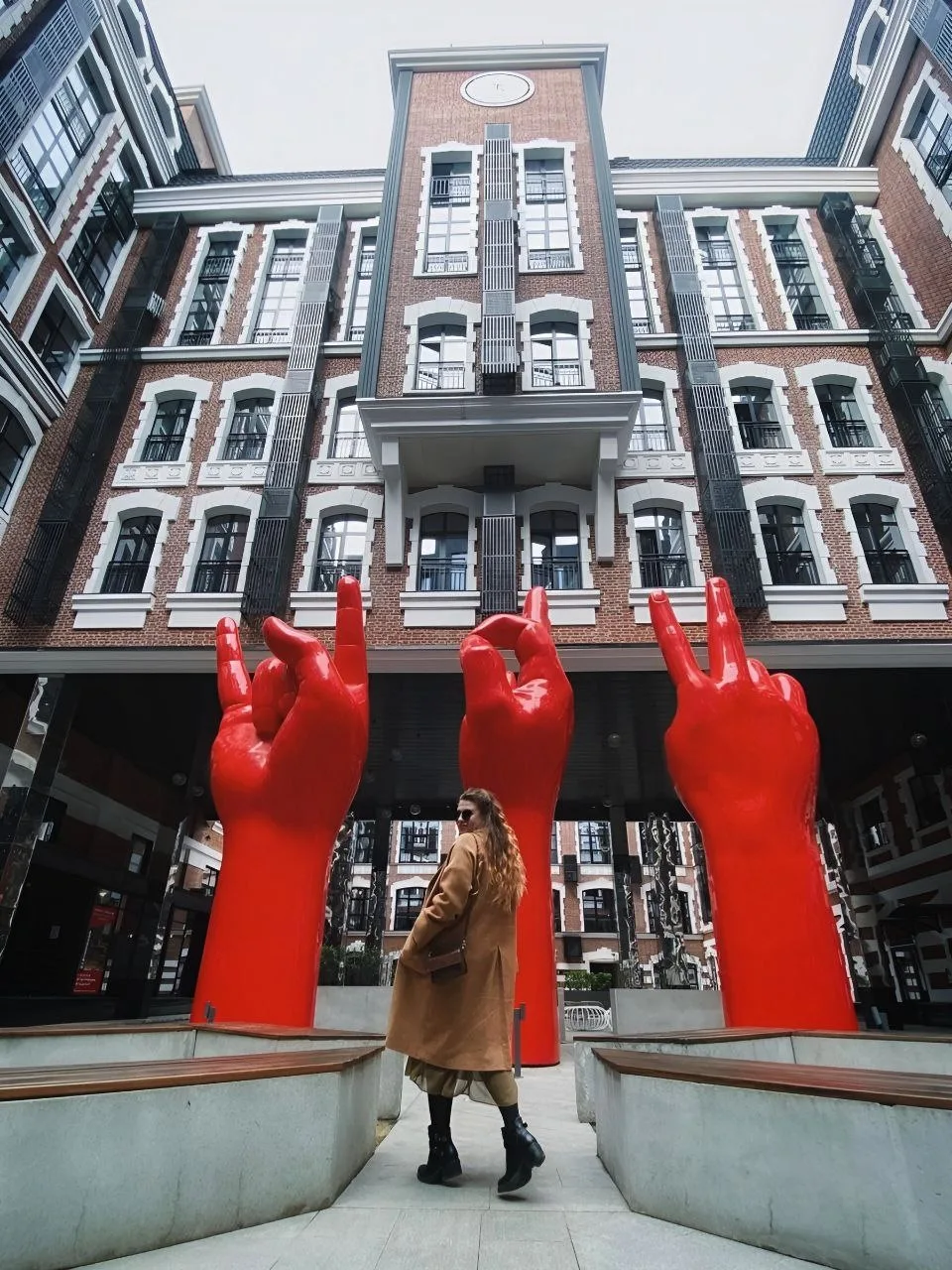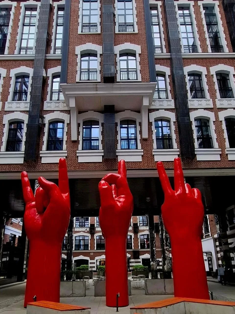 🖐 Три гигантские красные руки — каждая с собственным жестом