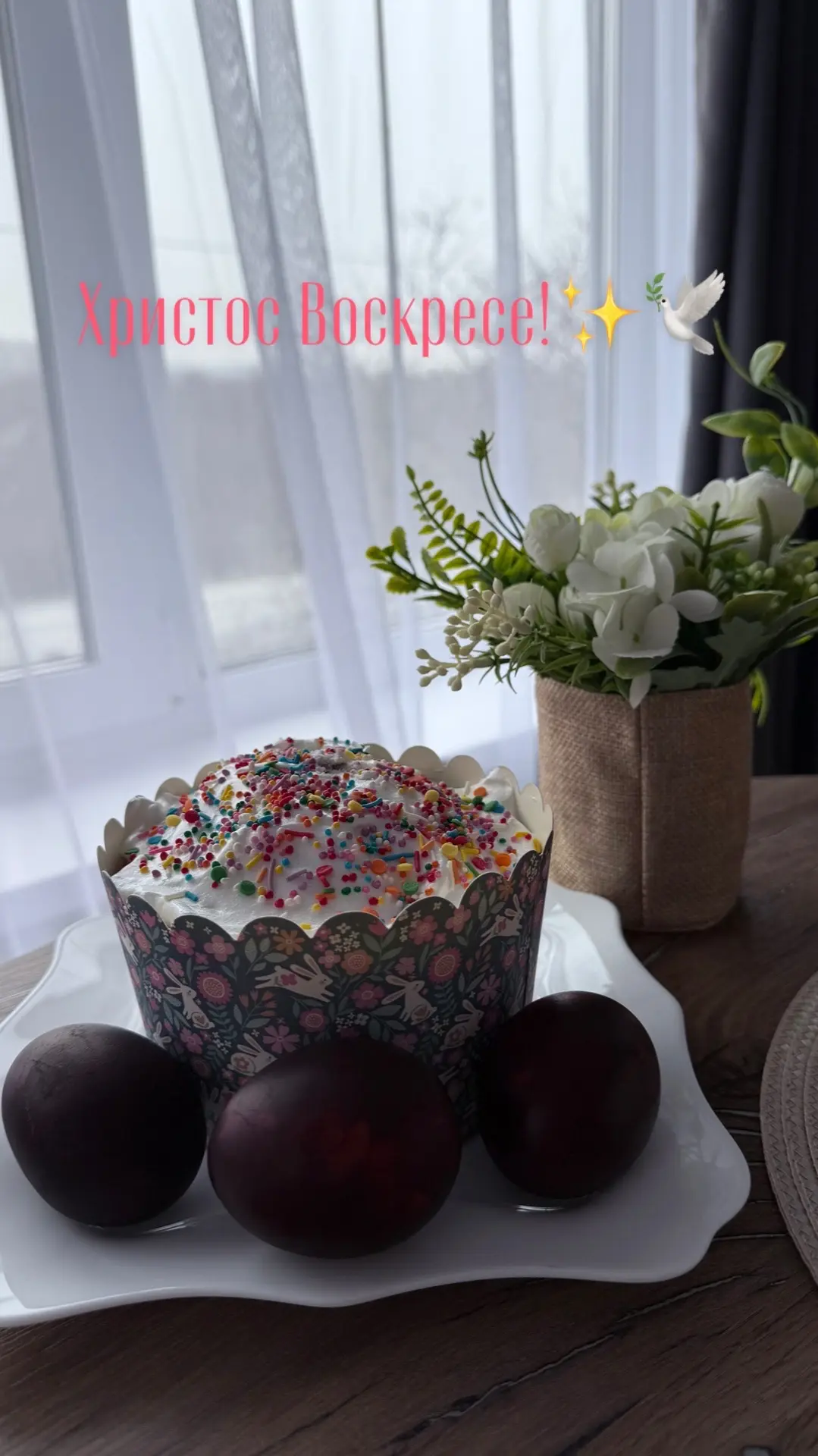 Я кст куличи не пекла, но нам испекла Наташа, сноха дядь Максима. Она еще тортики печет, кто со мной давно, знает.