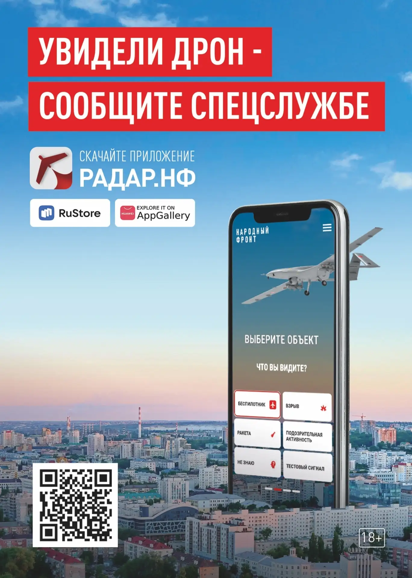 🛡 При обнаружении летательного аппарата оперативно сообщите об этом через приложение "РАДАР.НФ". Ваше сообщение поможет уберечь население от атак беспилотников.