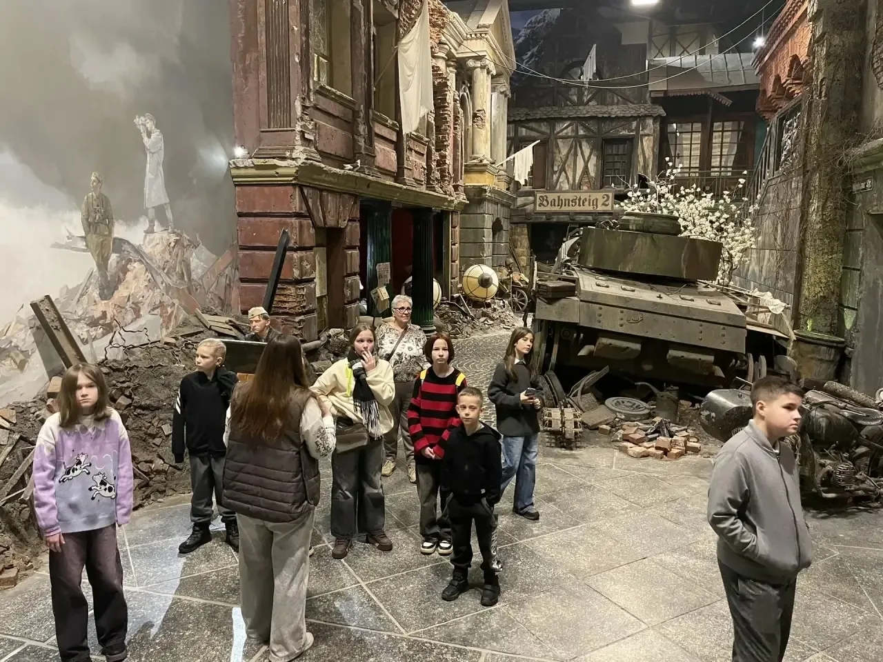 Оказавшись в настолько реалистичных декорациях, среди воссозданных фрагментов зданий, макетов техники и фигур героев, ни один из ребят и из родителей не остался равнодушным!