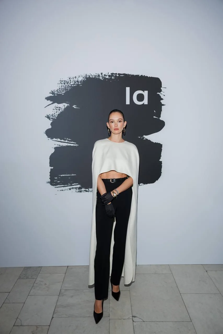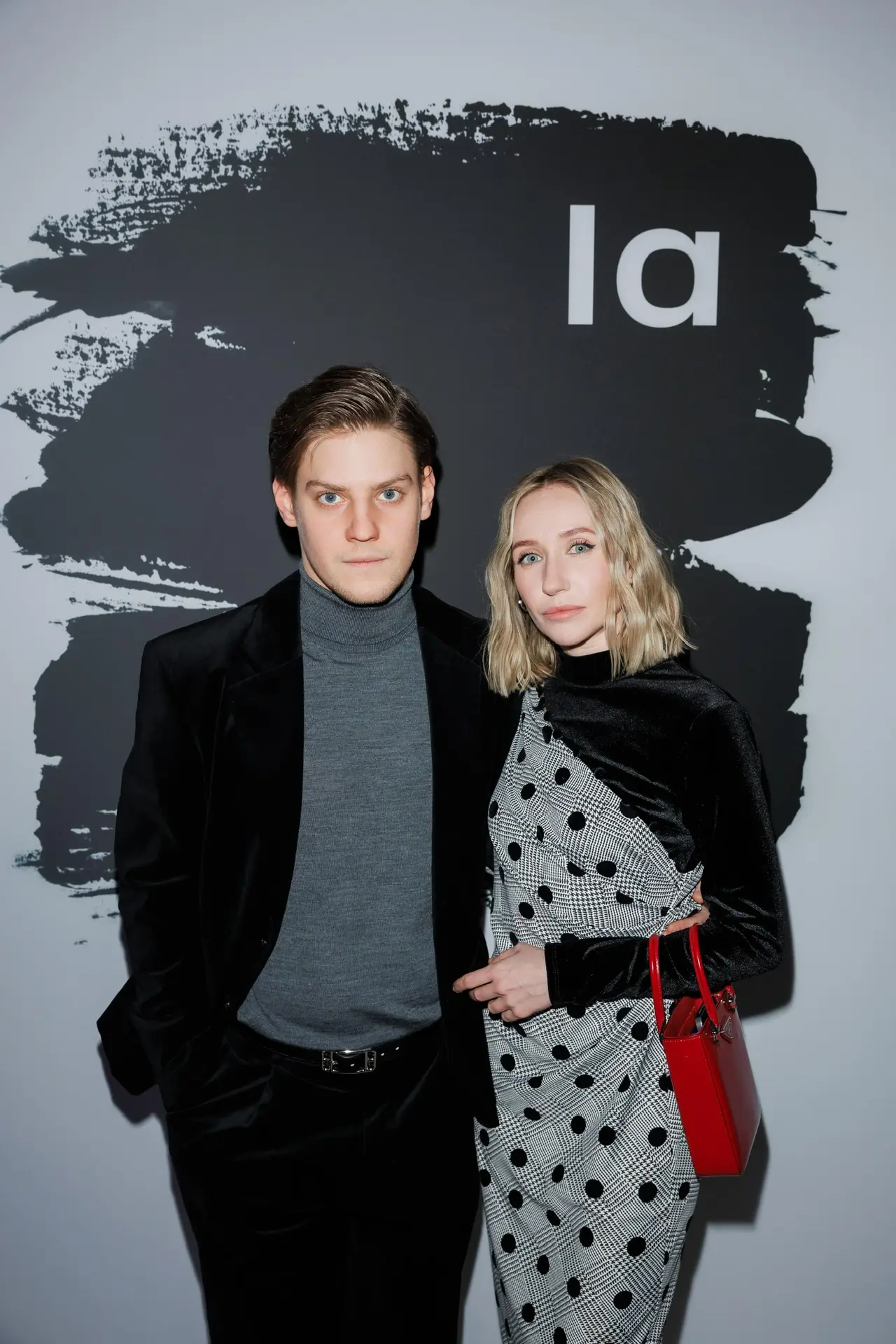 Юлия Барановская и Паулина Андреева показали элегантные образы, где гармонично сочетаются черное и белое, строгие линии и романтичные детали.