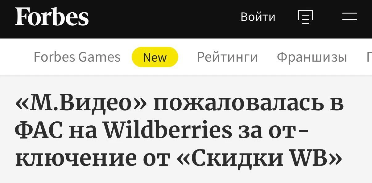 Смешное: «М.Видео» обратилась в ФАС с жалобой на Wildberries, потому что компанию отключили от механизма «Скидки WB» с 13 марта.