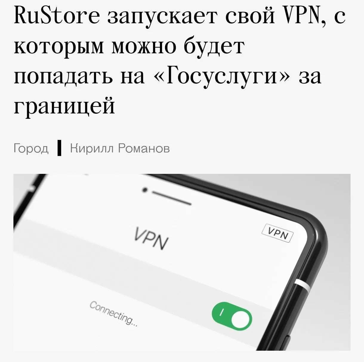 RuStore готовит свой VPN — с доступом к Госуслугам и банкам за границей. Судя по анкетам, будет два тарифа: бесплатный, только для российских сервисов, и платный — для «разрешённых» зарубежных вроде ChatGPT, Notion и Coursera. При этом Telegram, YouTube, TikTok и другие привычные вещи туда не входят.