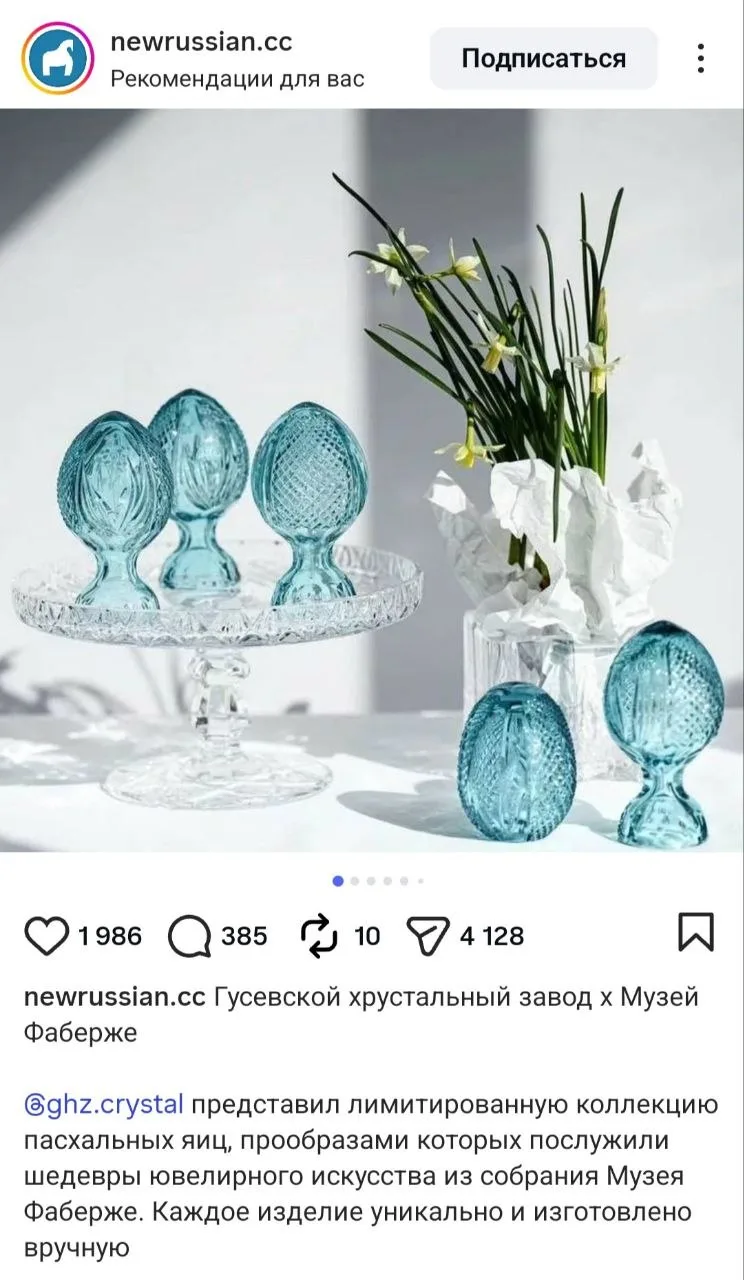 Гусевской хрустальный завод показал коллекцию пасхальных яиц в коллабе с музеем Фаберже и получил кучу восторженных комментариев от ценителей искусства.